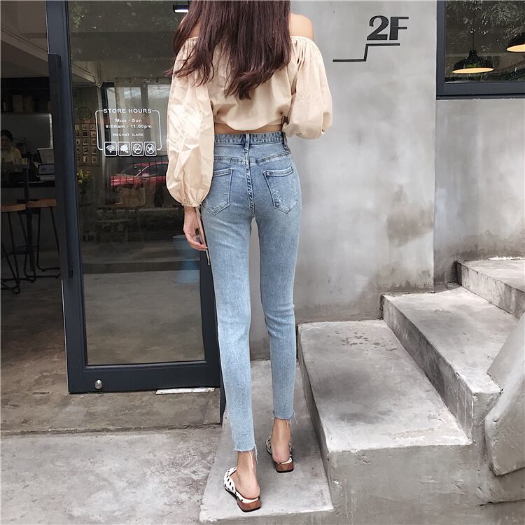 スプリングハイウェストジーンズ パンツ 薄手 春物 Xiaofeijia65282891630