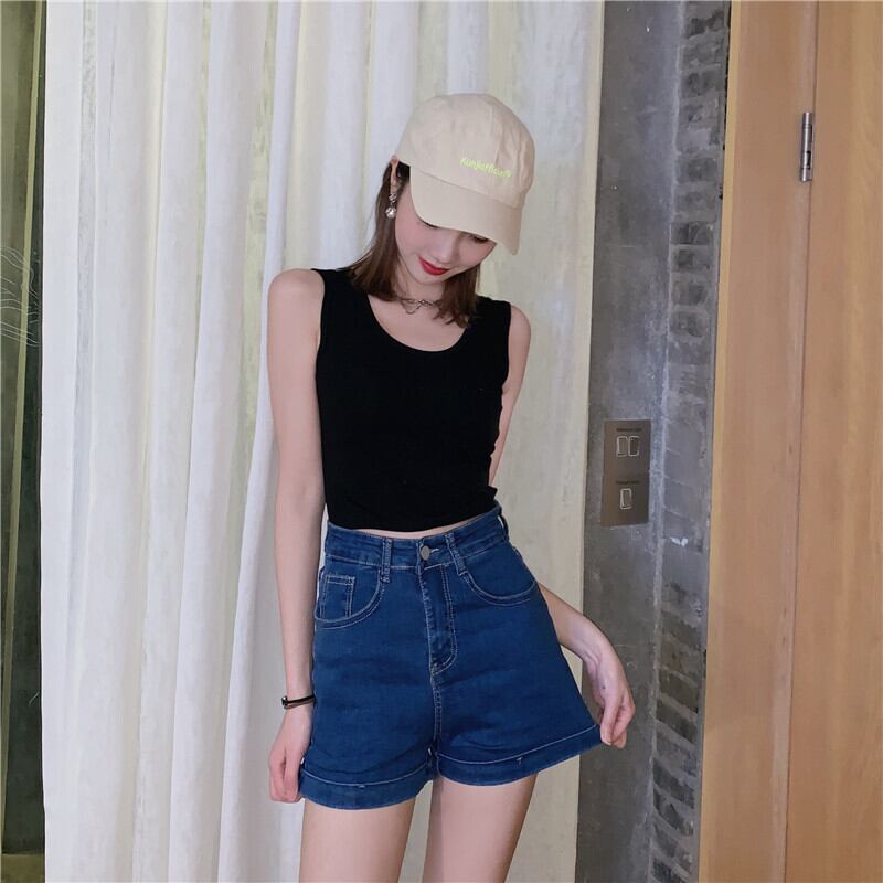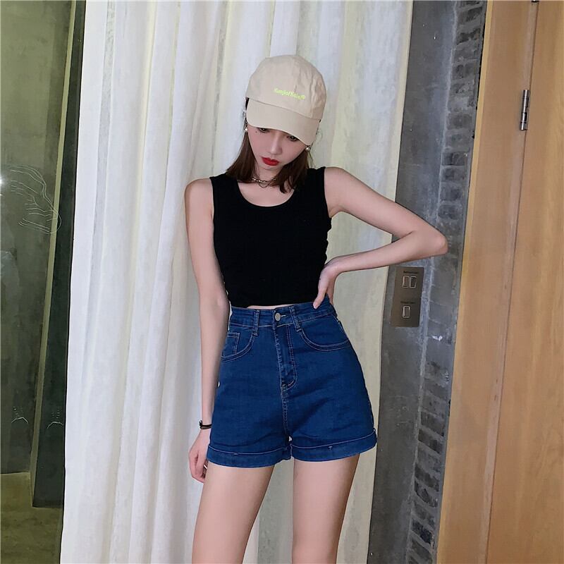 ジーンズ ハイウェストウェストスリムパンツ ショーツ サマーレッドストレッチ エラスティック 伸縮 夏物 ブルマー Xiaofeijia1096758943