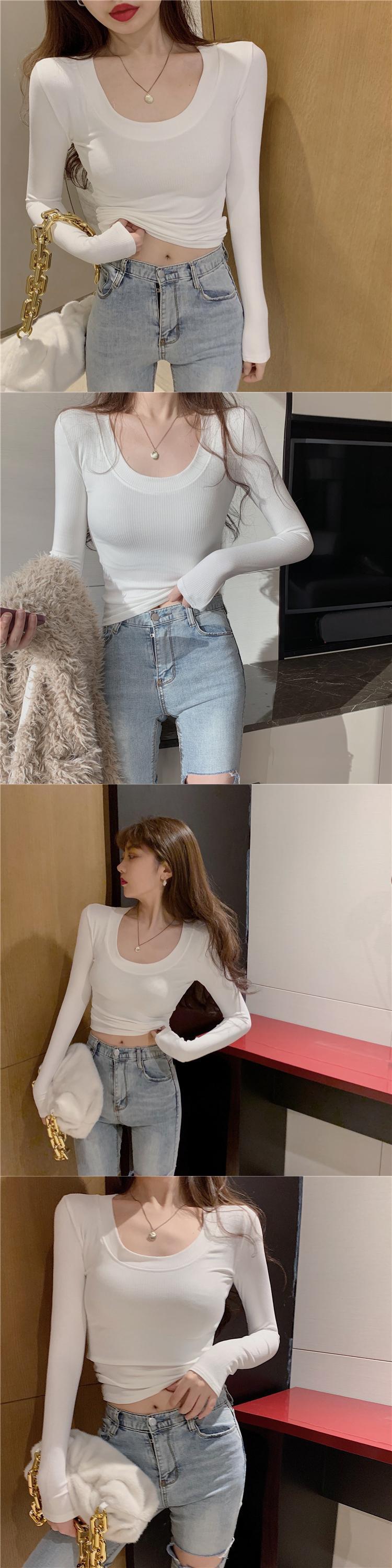 スプリングスリムソリッド カラーTシャツ シャツ トップス 薄手レディース ロング 春物 ソリッドカラー Xiaofeijia14566654672
