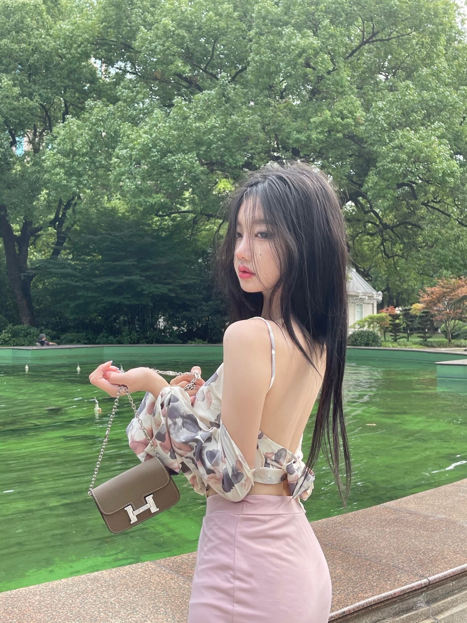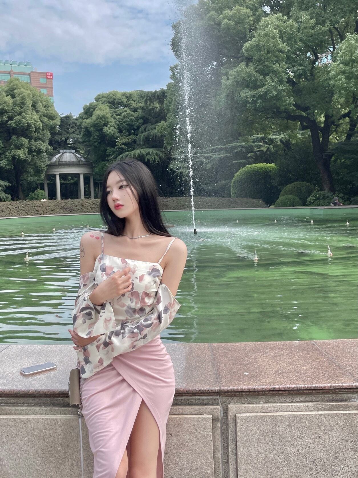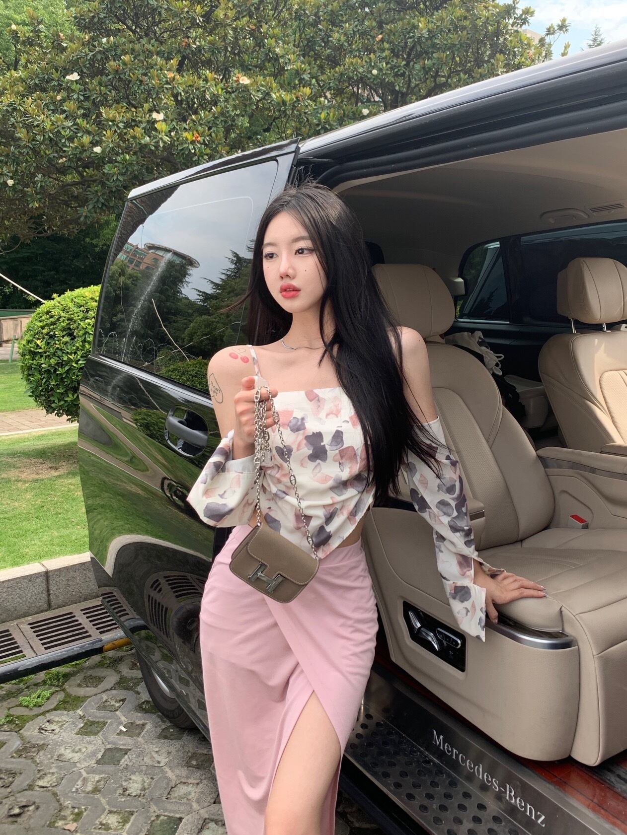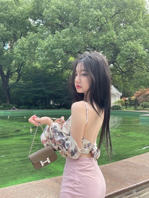 Flowerデザイン バックストラップレストップス スリットロングスカート フラワーデザイン Xiaofeijia89722940233