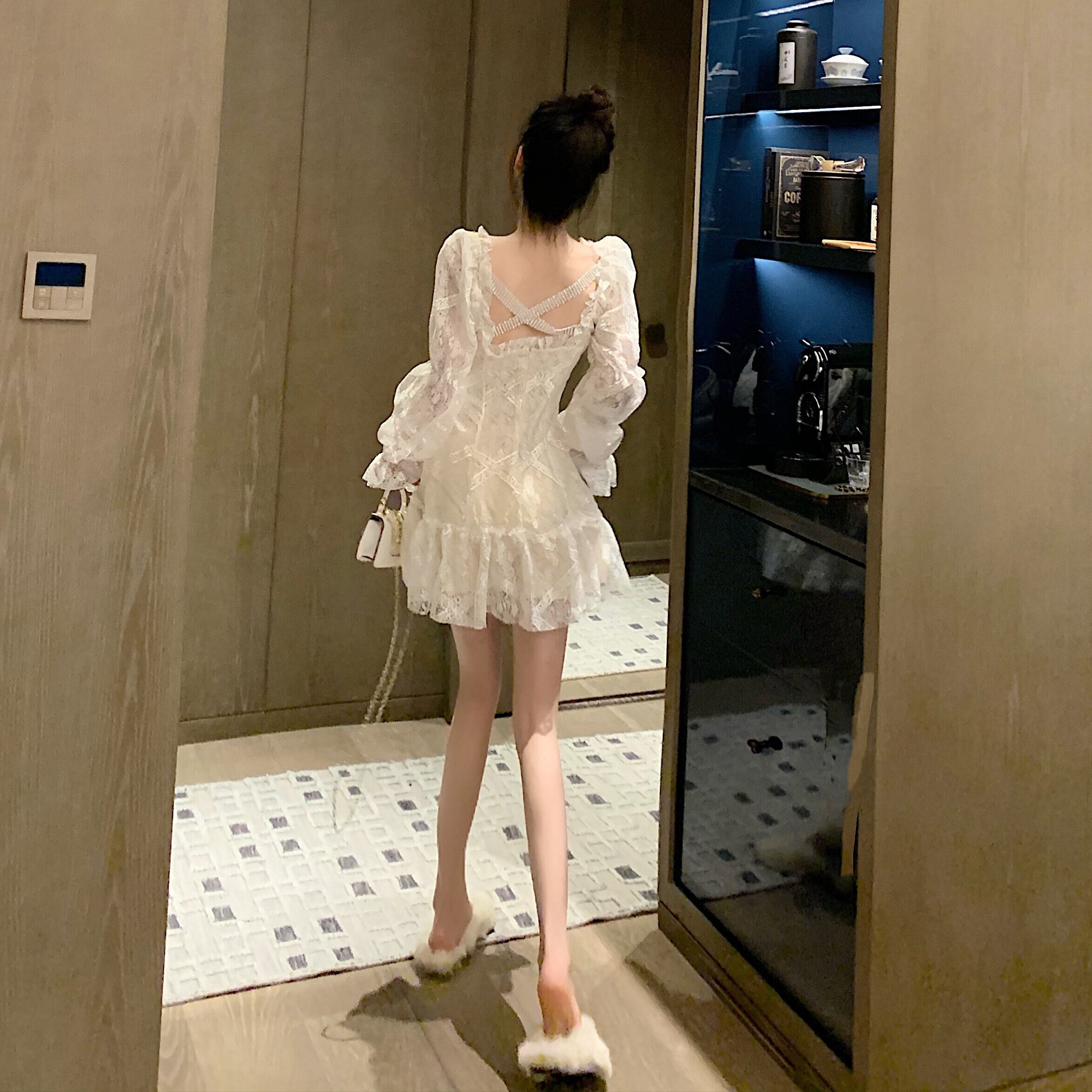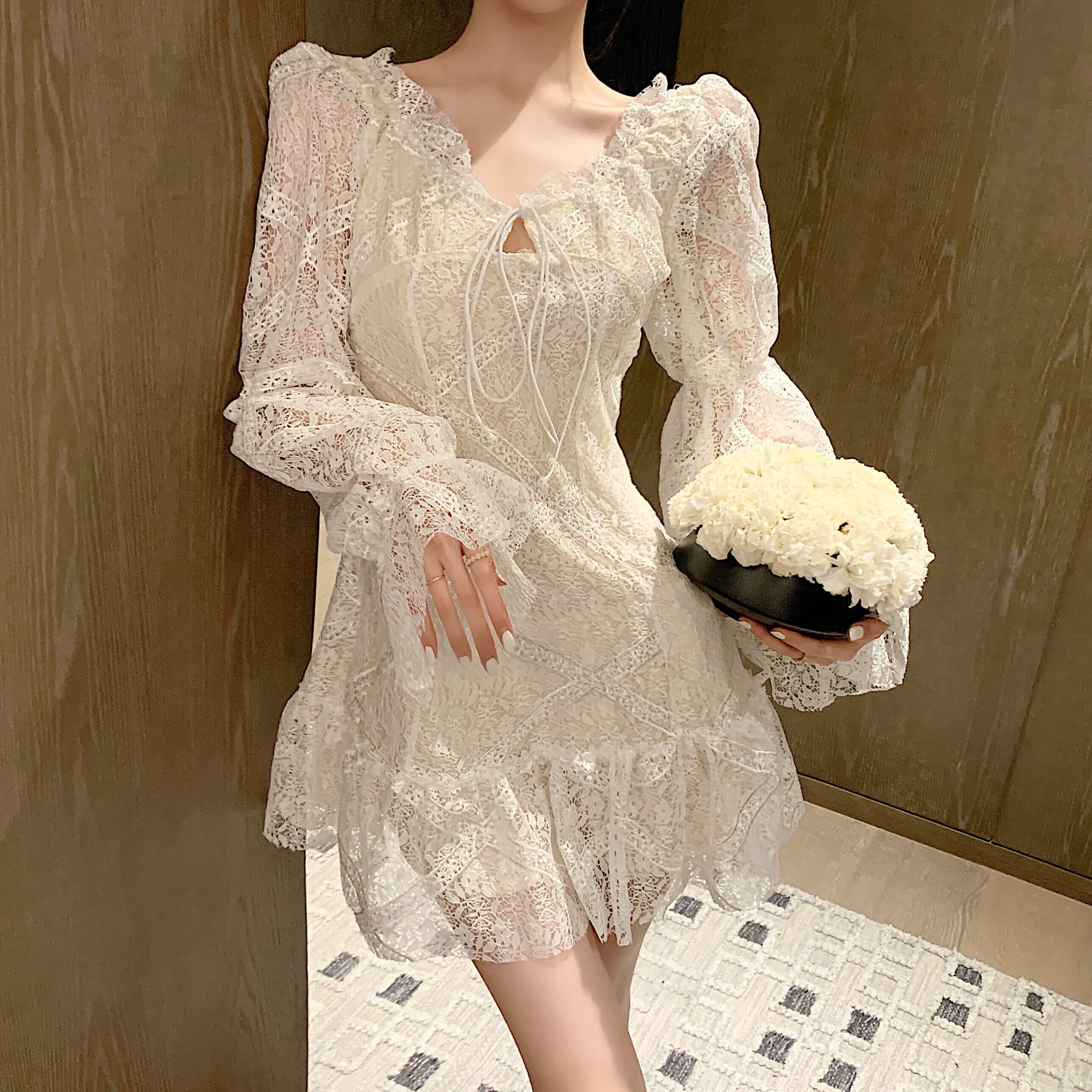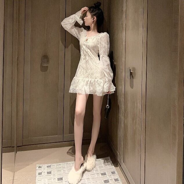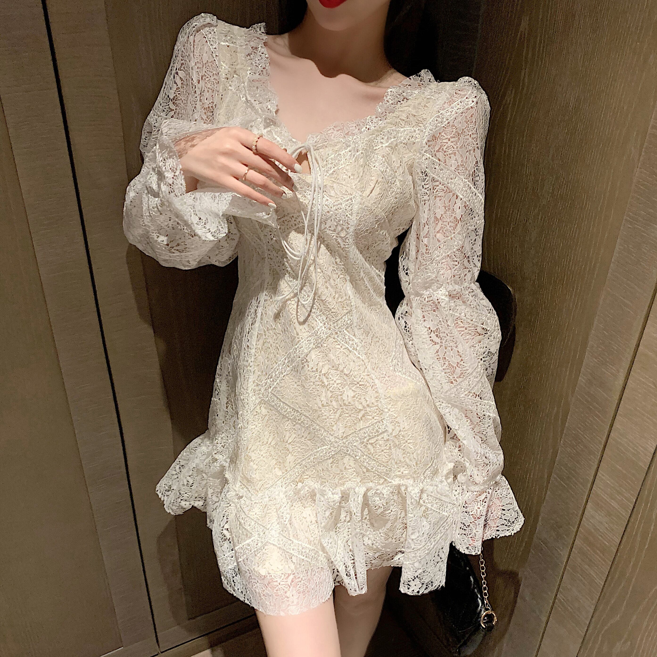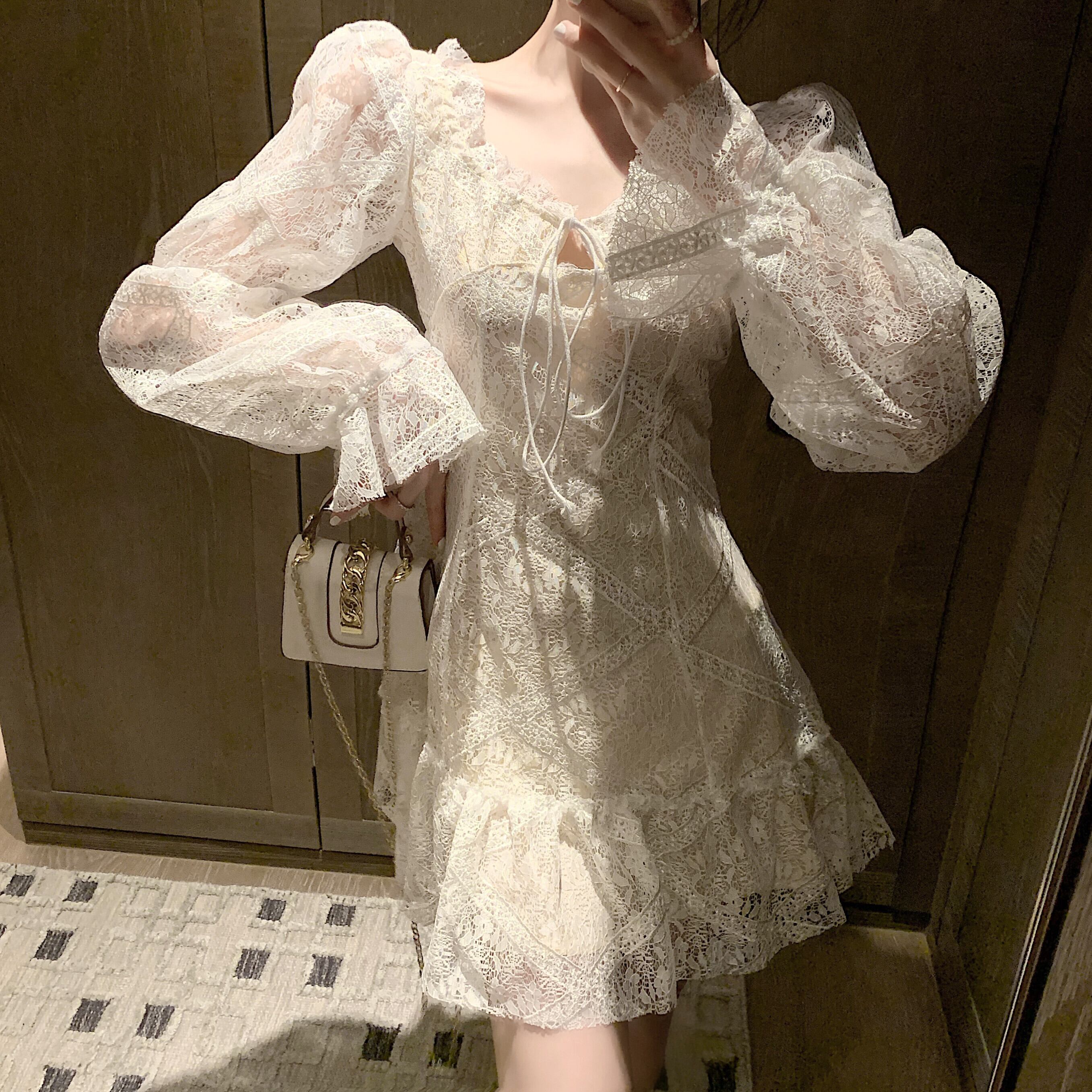 レースドレス スプリングスカート ロング薄手 長袖 春物 Xiaofeijia29287466374