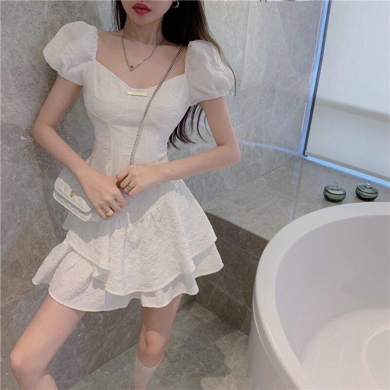 サマーレーススカート スリーブショートドレス 夏物 Xiaofeijia53968804479