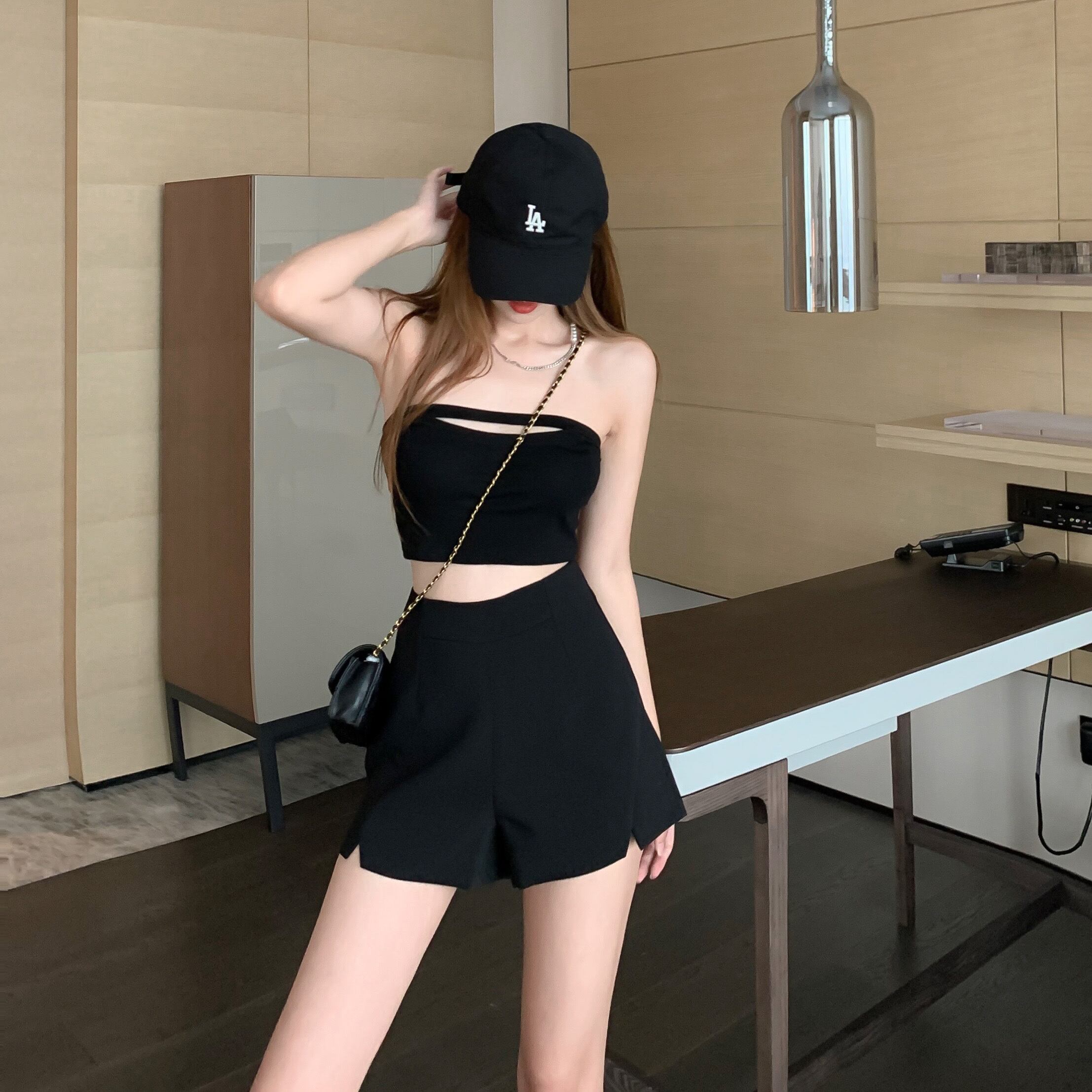 ブラックショーツ サマーハイウェストウェストシフォンパンツ ルーズカジュアルAラインワイドレッグ 夏物 ブルマー ワイドパンツ Xiaofeijia954112911