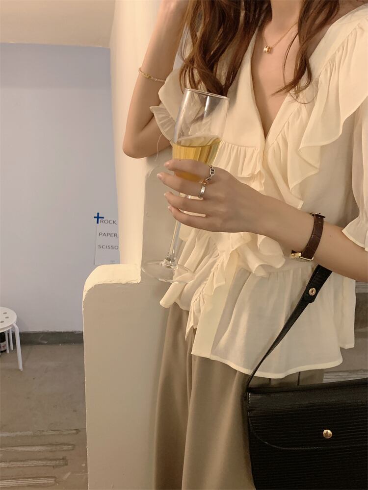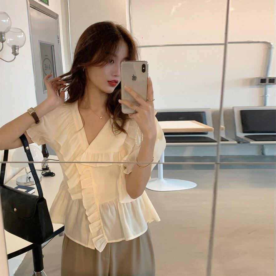 トップス スリーブサマーショートシャツ 大人ガーリー スウィート キュート カジュアル 夏物 Xiaofeijia54873985773