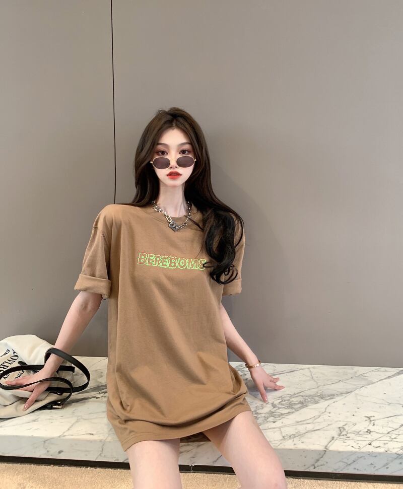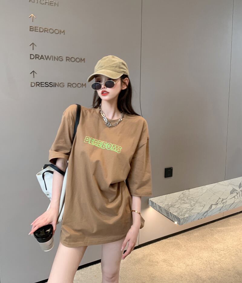 スタンダードスタイルラウンドネックルーズTシャツ レディース レトロ Oネック Xiaofeijia72490492768