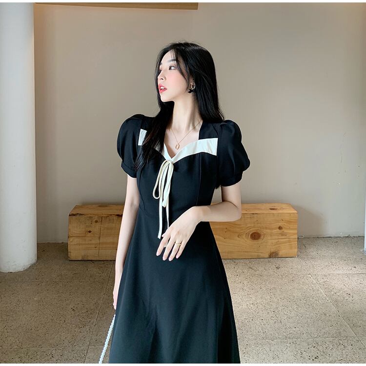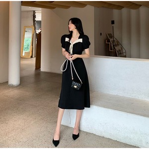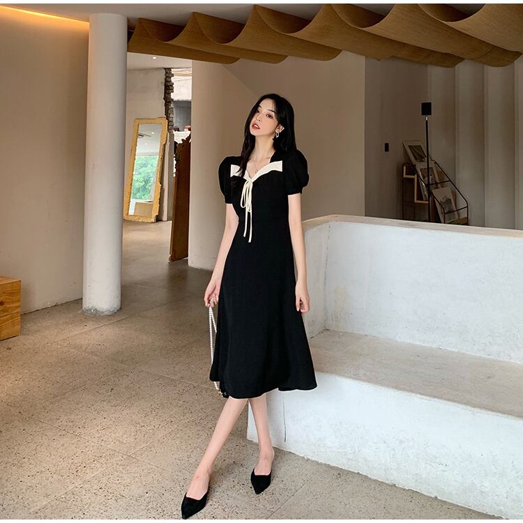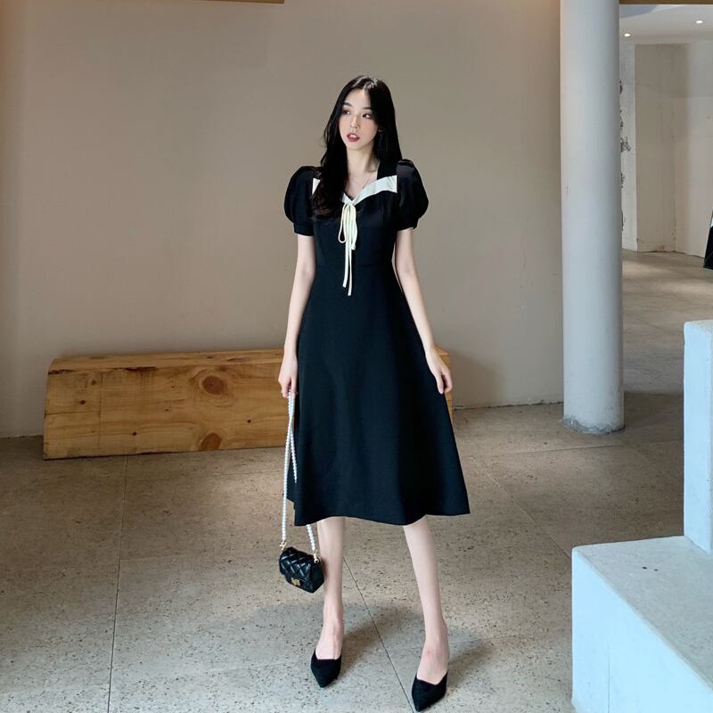 スタンダードスタイルカラーブラックスカート スリムドレス レトロ Xiaofeijia35413591079