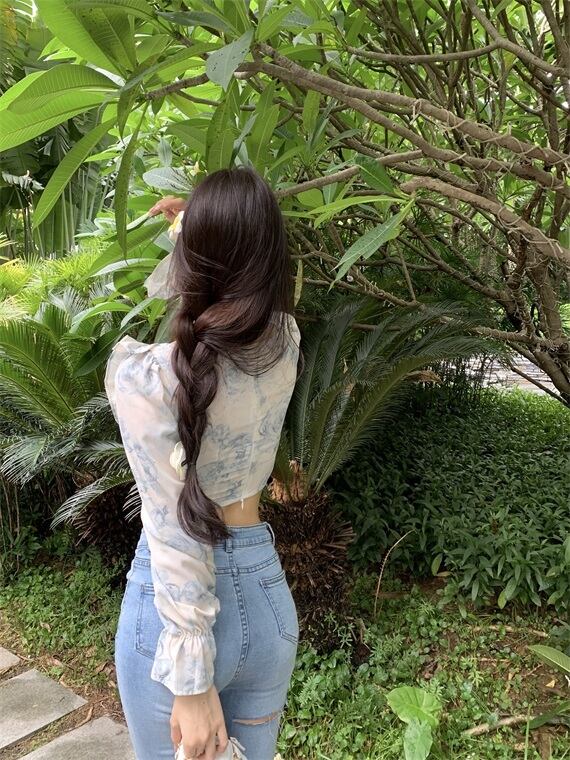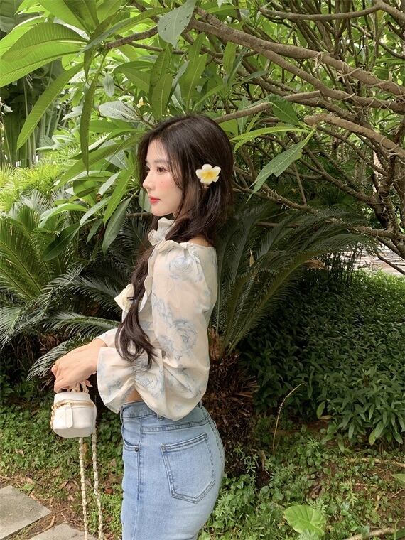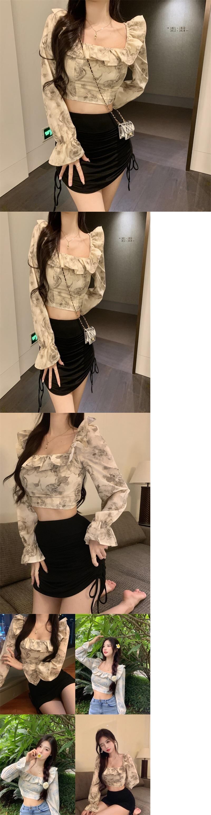 サマーショートトップス プリントカラーフローラルシフォンシャツ 夏物 花柄 Xiaofeijia33674387091