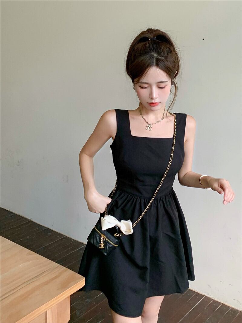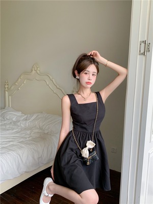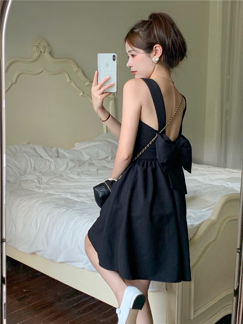 スタンダードホルターリボンハイウェストウェストドレス レトロ スクウェア Xiaofeijia88443927548
