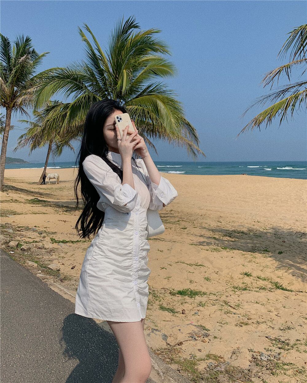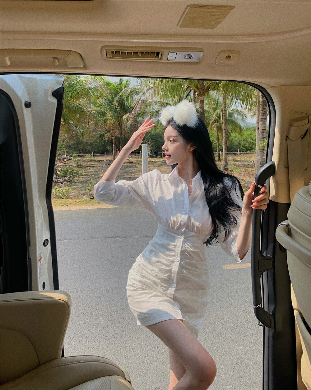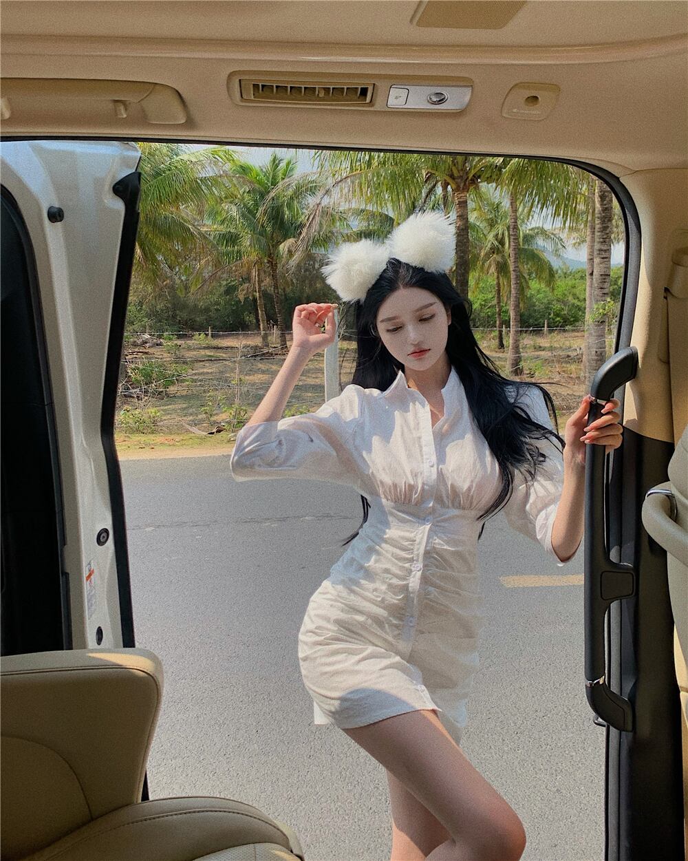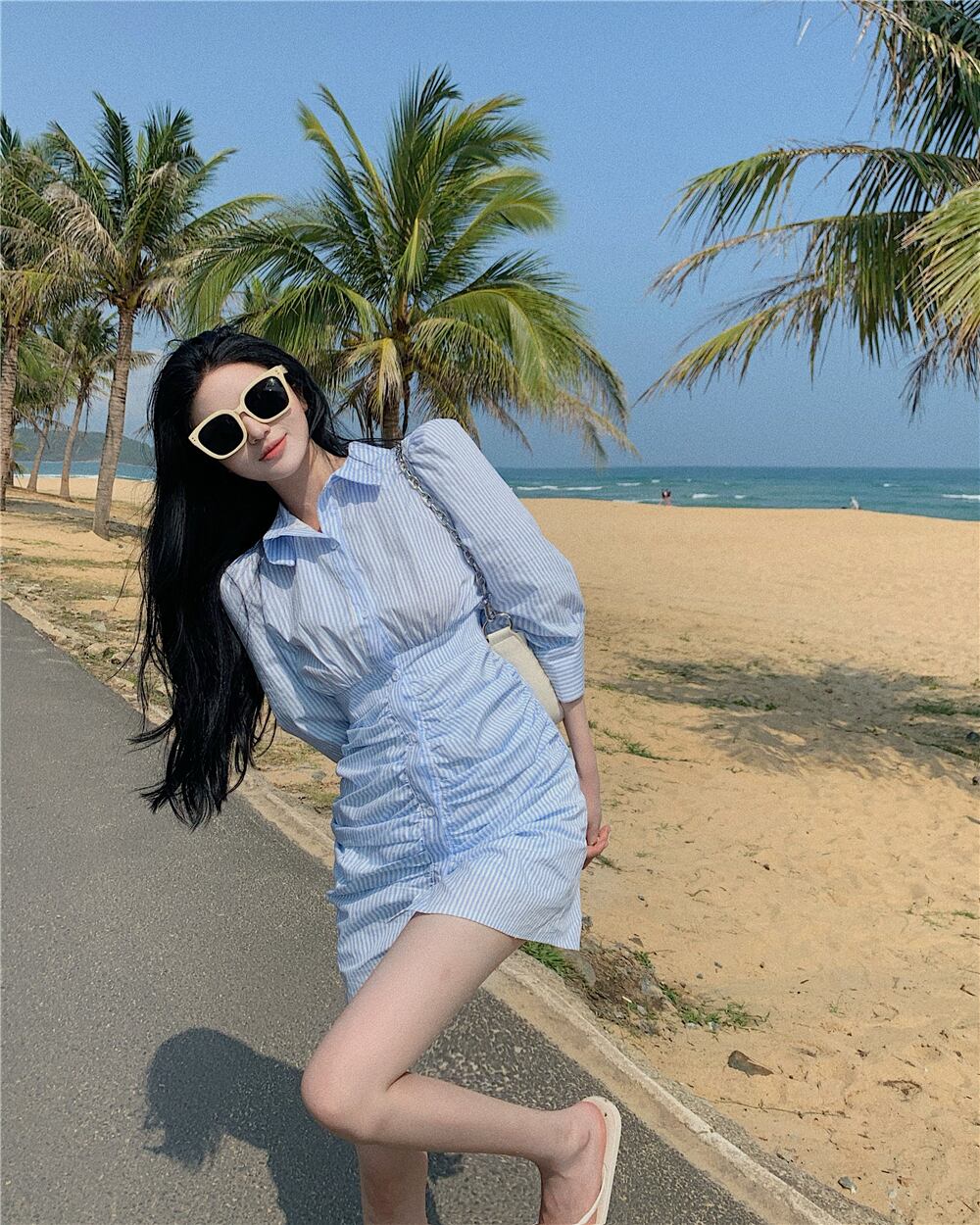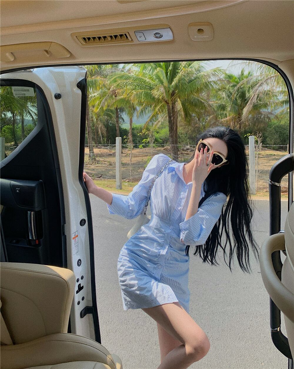 カラーストライププリーツシャツ ドレス サマーウェストスリーブスカート 夏物 Xiaofeijia87021172962