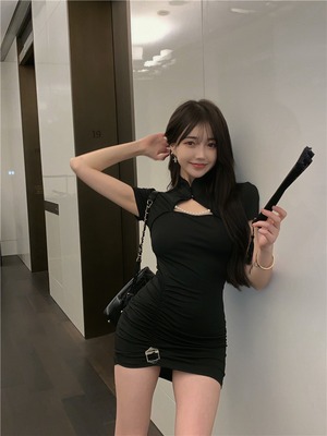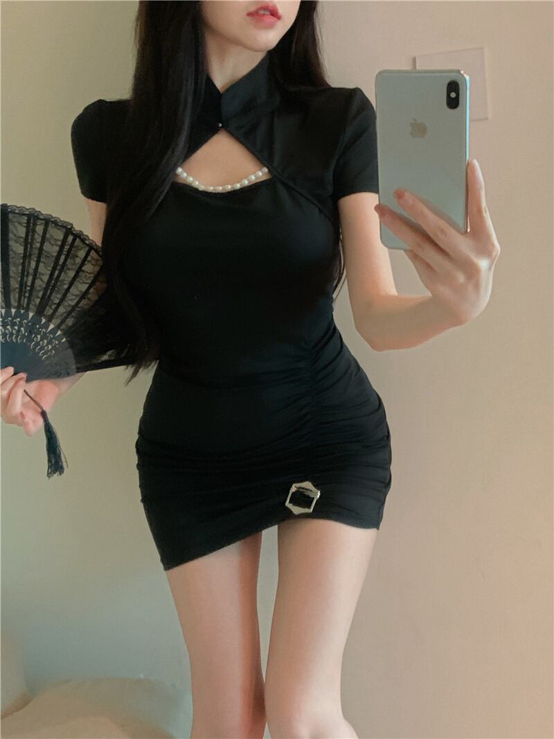 スタンダードスカート パールスリットショート レトロ 真珠 Xiaofeijia62195468410