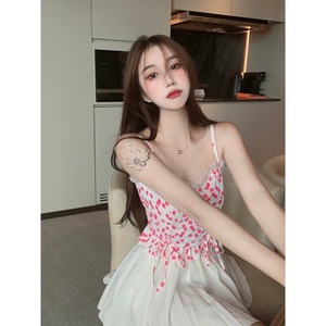 サマースタンダードフローラルショートスリムトップス レトロ 夏物 花柄 Xiaofeijia92846457203