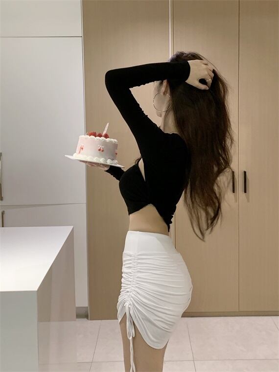 チェーン ハイウェストウェストショートトップス サマーアシンメトリーTシャツ レディース ロング 夏物 Xiaofeijia88307377213