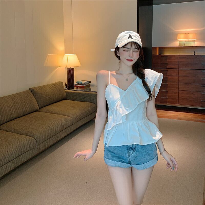 Vネックプリーツノースリーブ Xiaofeijia8183182732