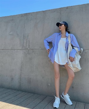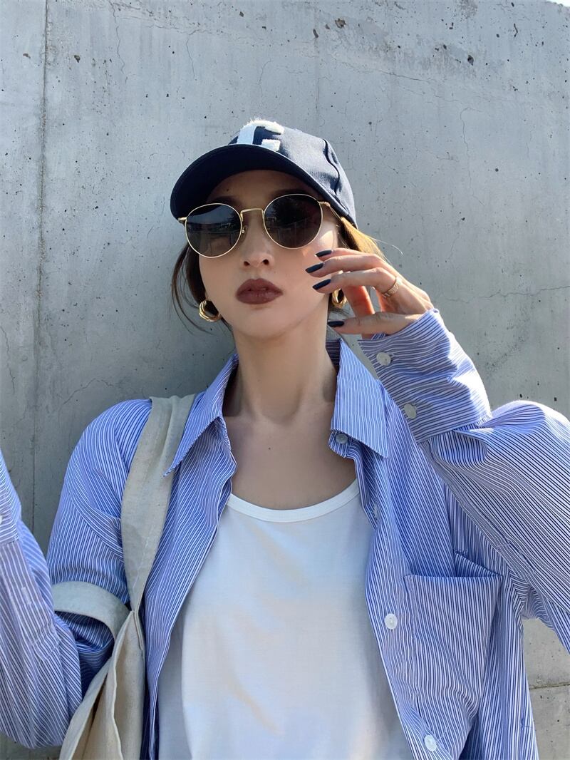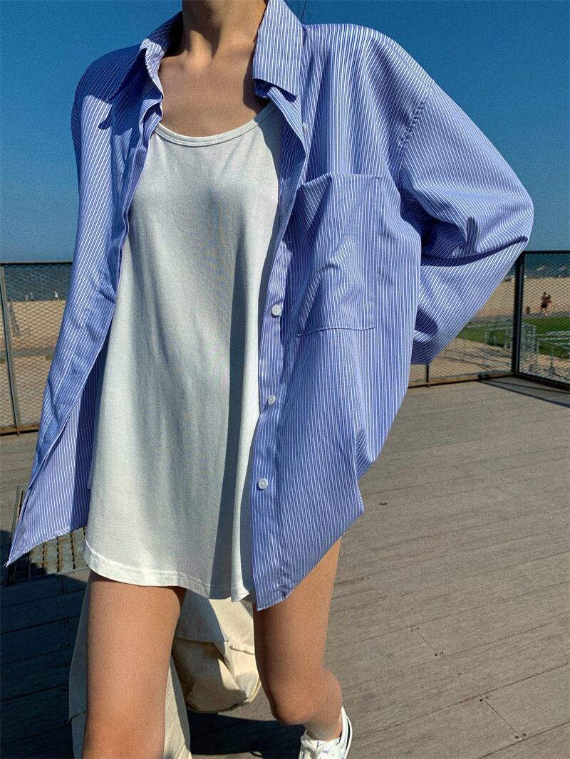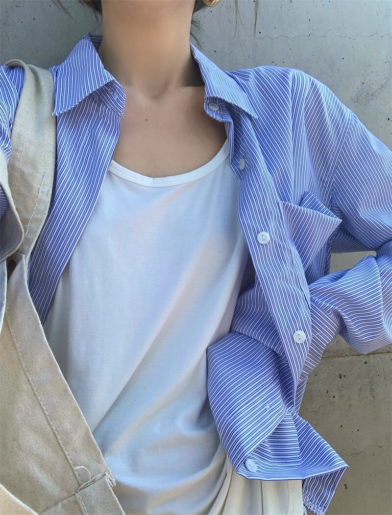 ルーズストライプシャツ ホワイトTシャツ Xiaofeijia17280465721