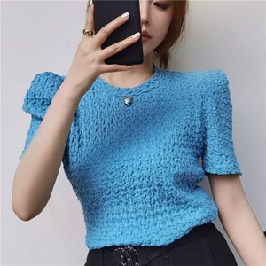 スプリングサマーラウンドネック薄手ショートTシャツ スリムブラウス 春物 夏物 Oネック Xiaofeijia43105534690