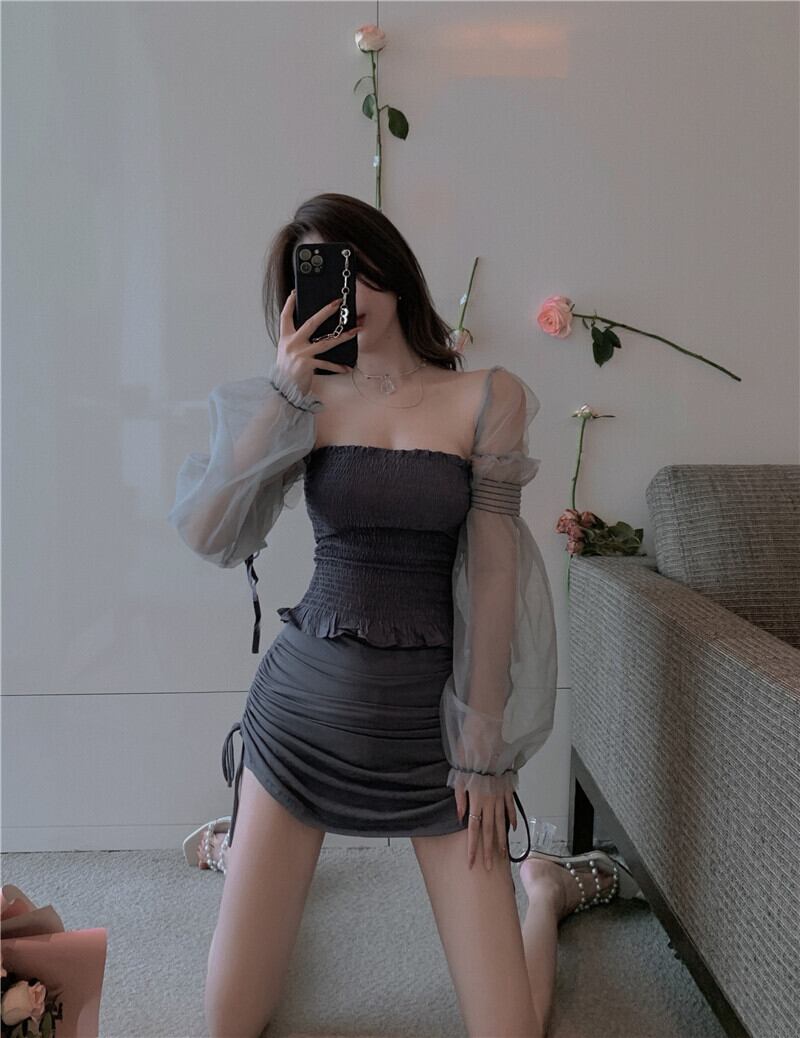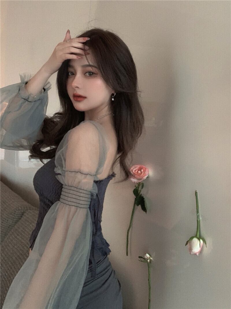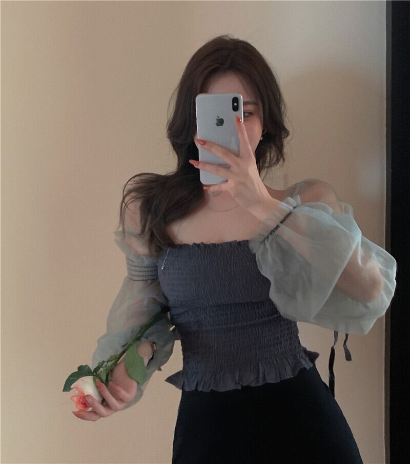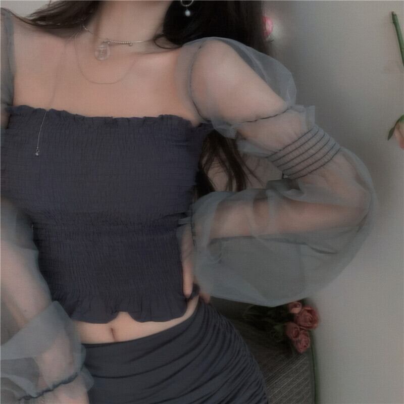 ダークメッシュシャツ サマー薄手スリーブトップス レース 夏物 Xiaofeijia55961762999