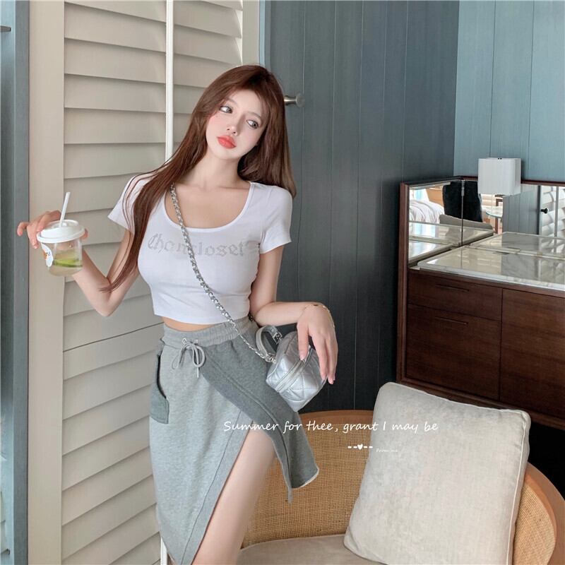 ショートTシャツ サマーハイウェストウェストスカート 夏物 ヨーロピアン Xiaofeijia97706592973