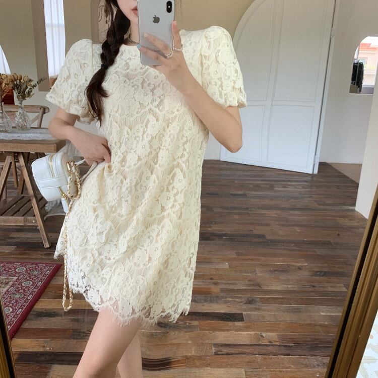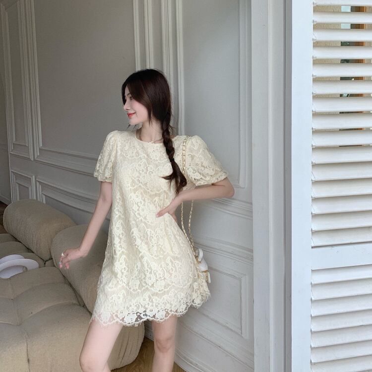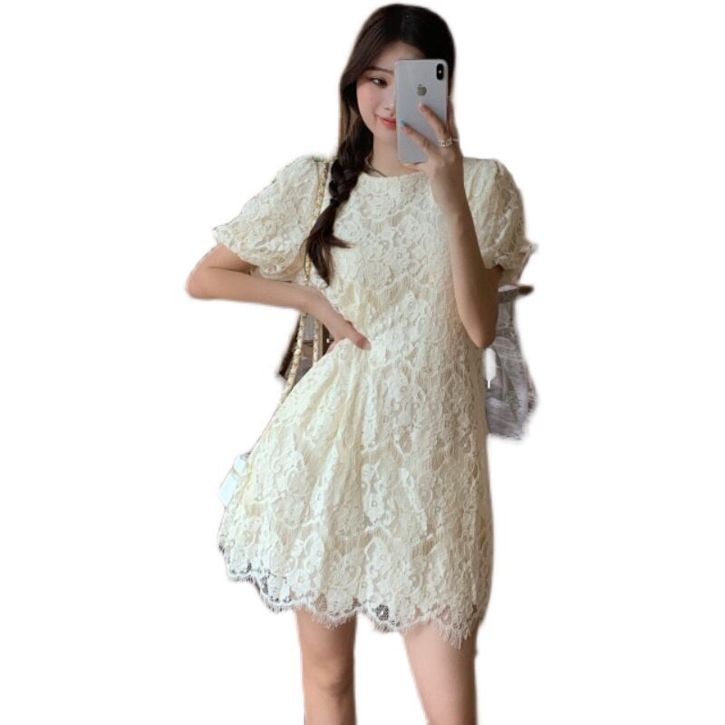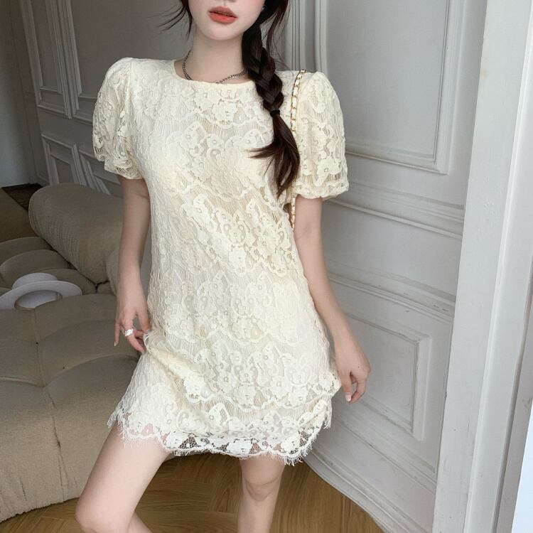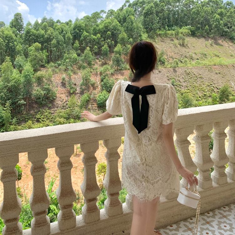 スタイルスリーブレーススカート バックリボンドレス Xiaofeijia77967504753