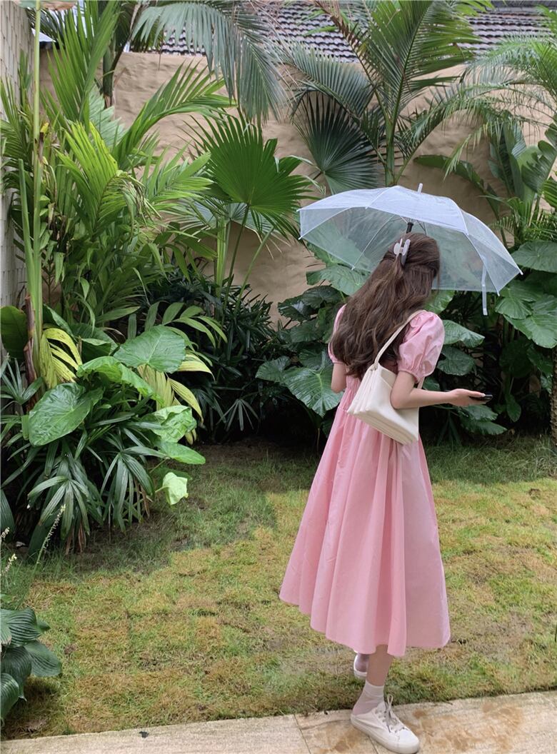 スリーブドレス ウェストスリムロングスカート レディース ピンク Xiaofeijia92380507092