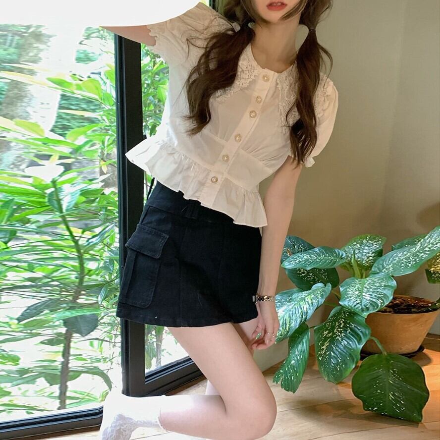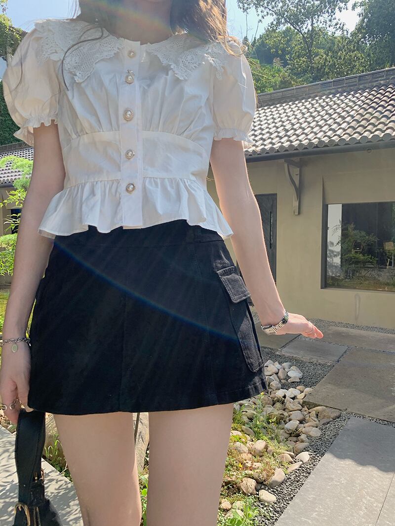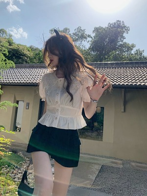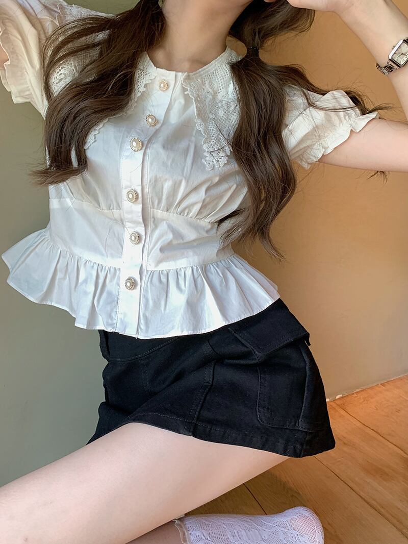 レースカラーシャツ レディース薄手ホワイトブラウス サマー 夏物 Xiaofeijia42987046681