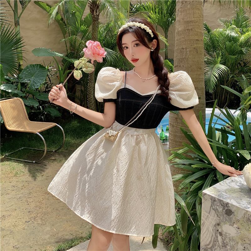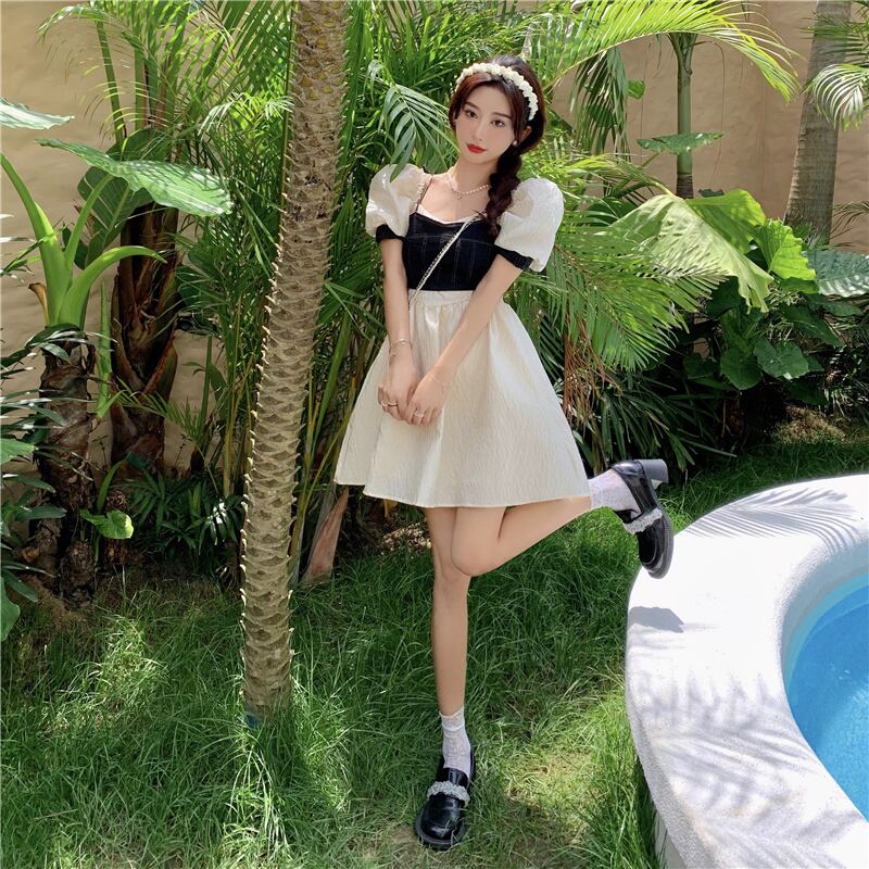 スリーブドレス カラーサマーウェストショートスカート 夏物 スクウェア Xiaofeijia831167780