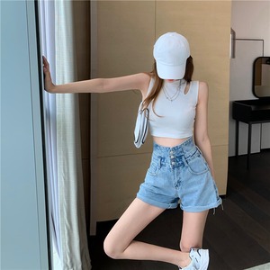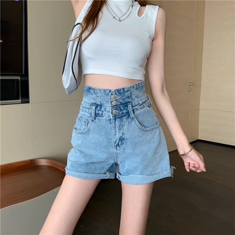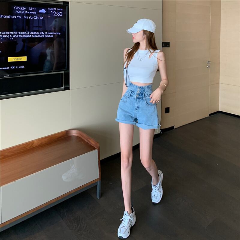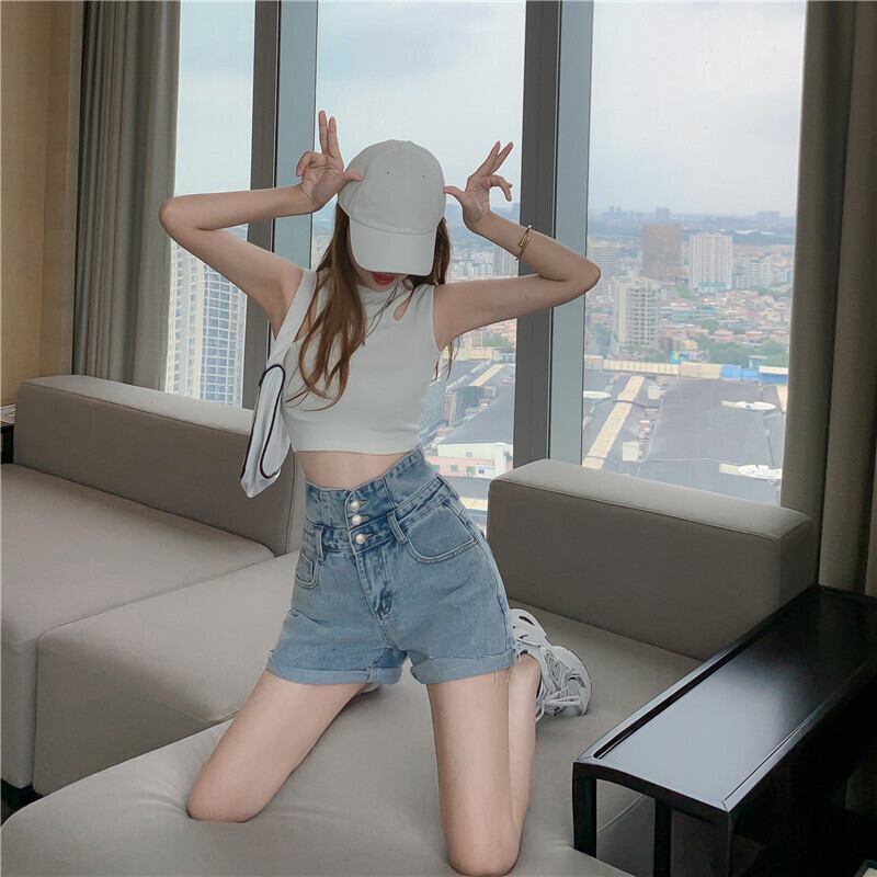 ワイドレッグハイウェストウェストブレストジーンズ レディースサマー薄手ショーツ ルーズAラインパンツ ストリート 夏物 ブルマー ワイドパンツ Xiaofeijia52891284954
