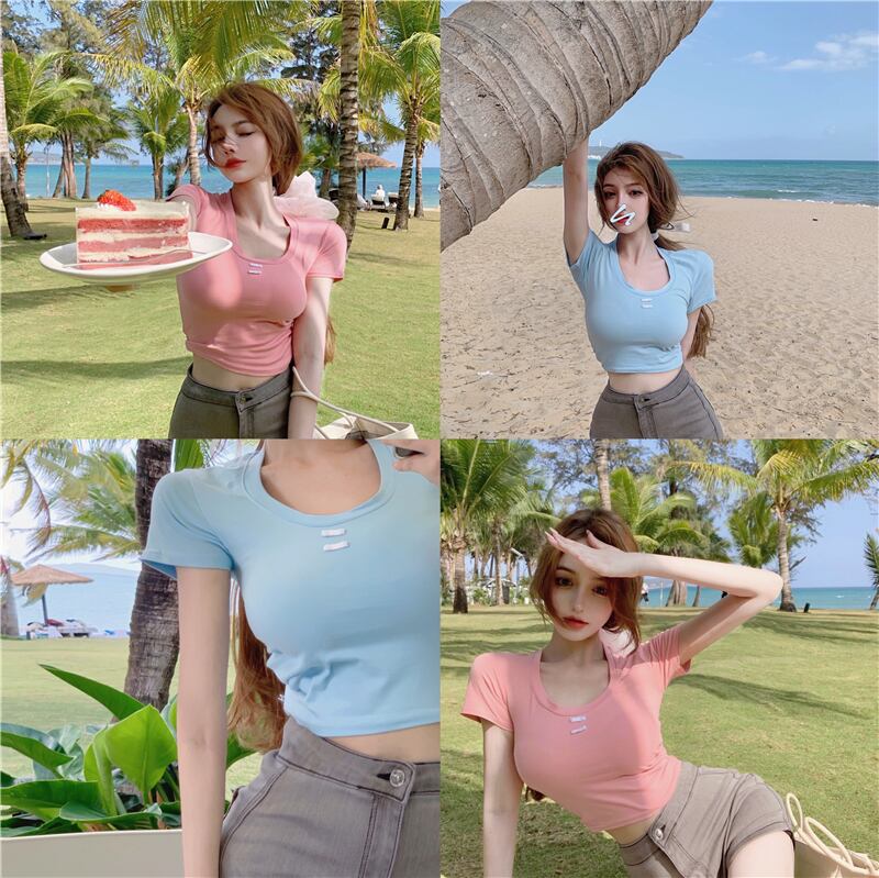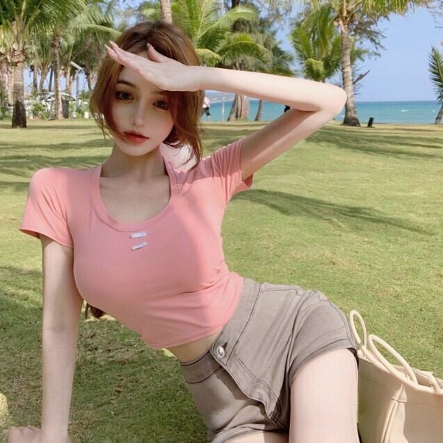 ショートトップス サマーTシャツ ストレッチ エラスティック 伸縮 夏物 ピュア Xiaofeijia99002520602