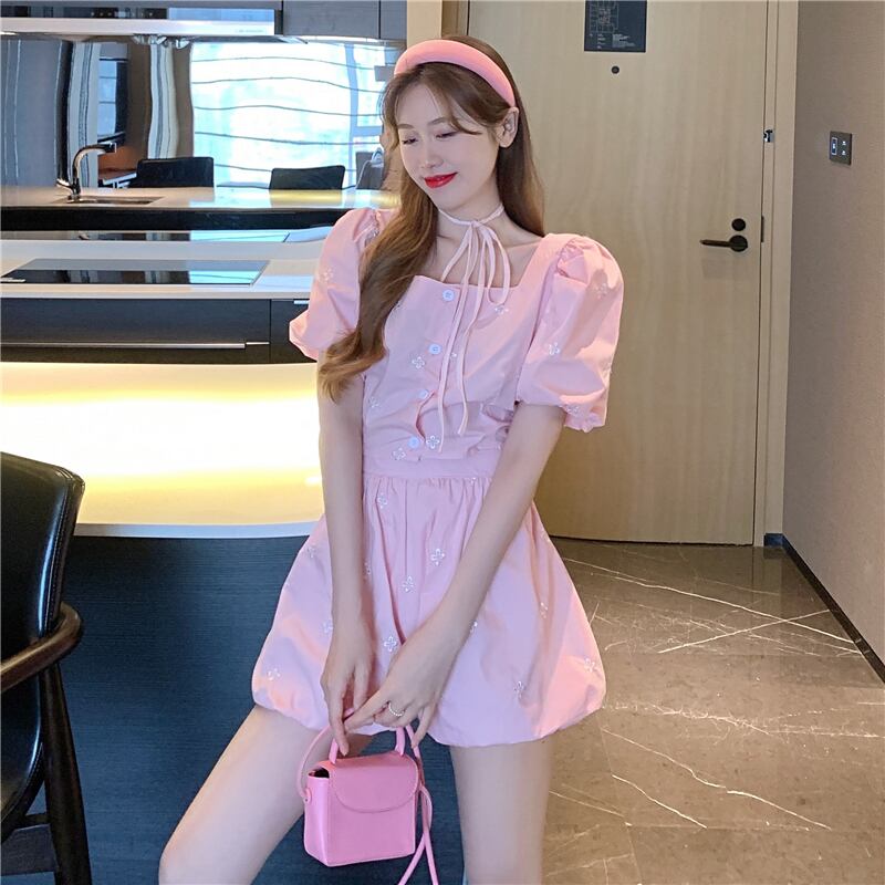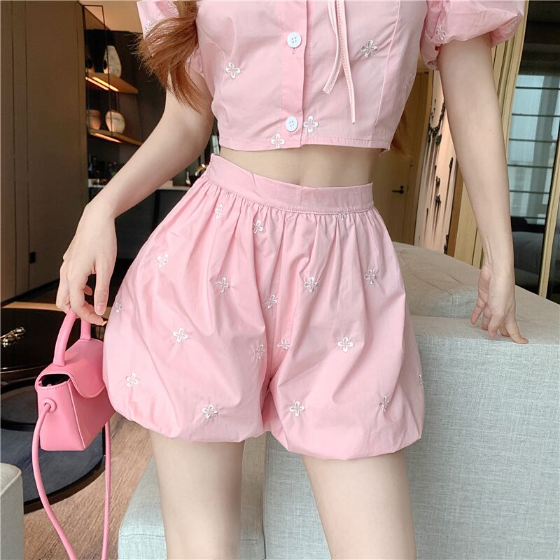 レッドセット Flowerデザイン スリーブトップス ショーツ サマー 刺繍 夏物 ブルマー フラワーデザイン スクウェア Xiaofeijia89118238458