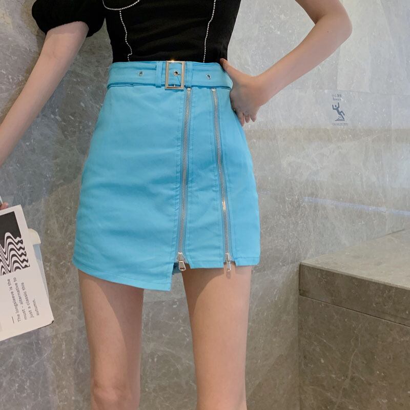 レッドハイウェストウェストAラインスカート サマーミニサイドスリットダブルジッパー 夏物 Xiaofeijia22231066404