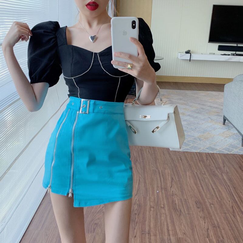 色:ブラックトップ,ホワイトトップ,ブルーのジッパースカート,ブラックジッパースカート