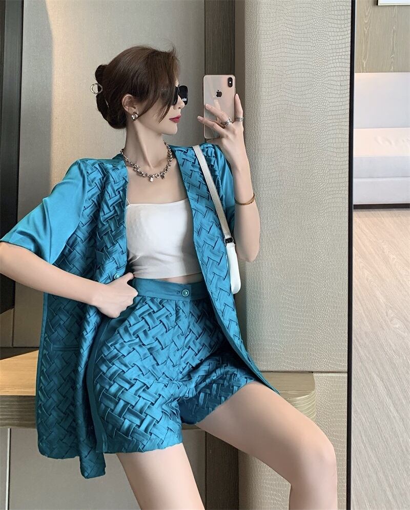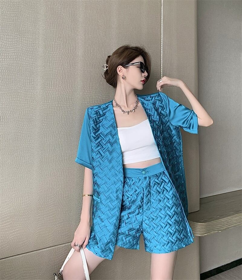 セット サマージャケット ハイウェストウェストワイドレッグパンツ 夏物 ワイドパンツ Xiaofeijia76704182973