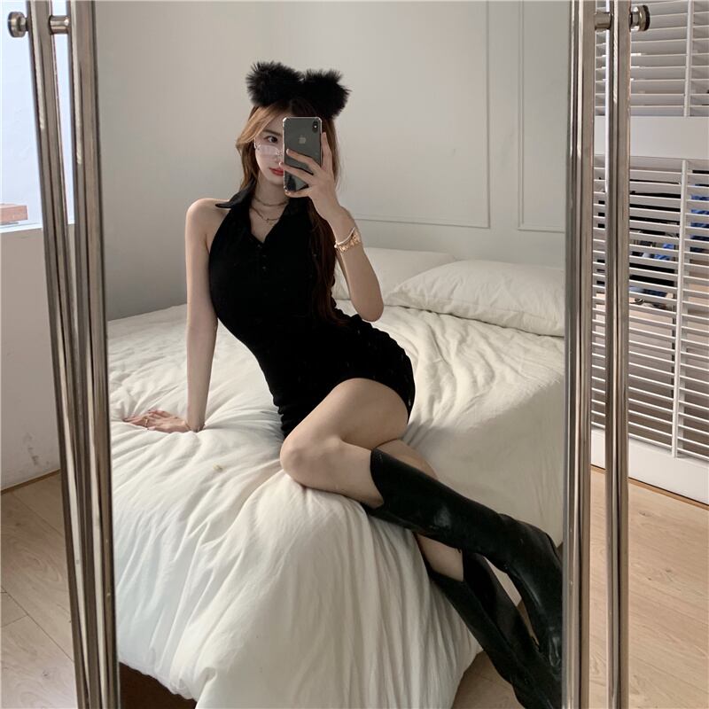 バックドレス サマーシャツ カラーニットノースリーブショートスカート 夏物 Xiaofeijia2877875475