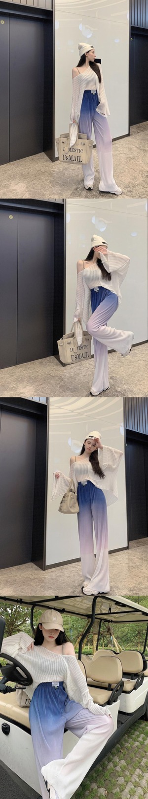 色:日焼け止めトップ,ブルーのグラデーションパンツ,グレーグラデーションパンツ