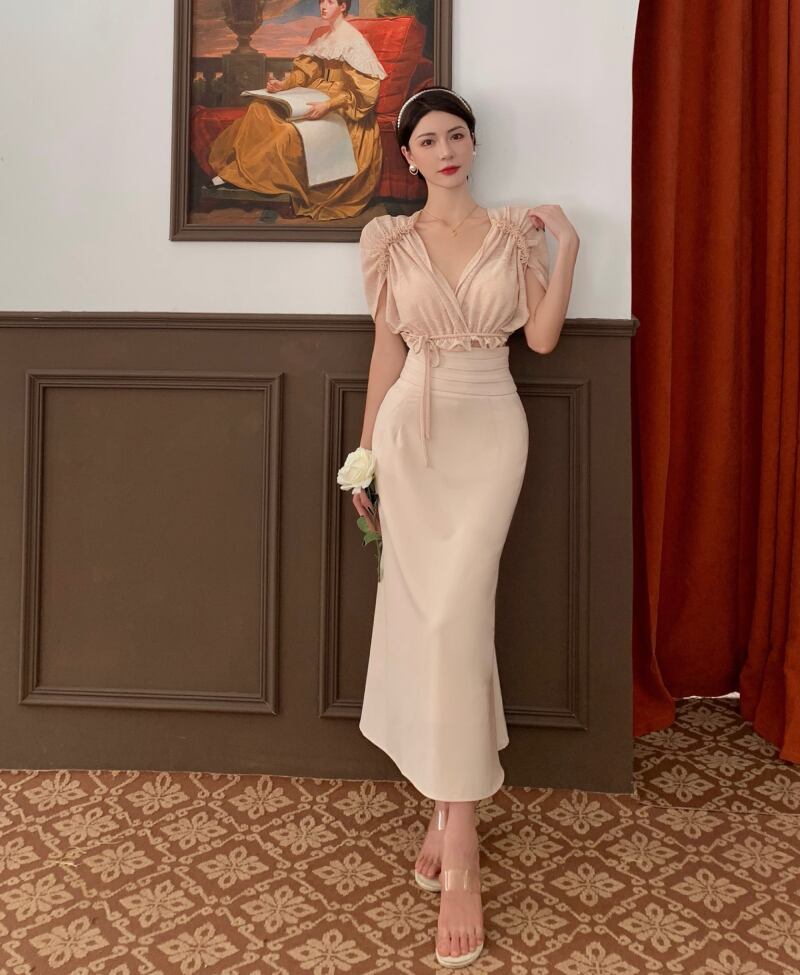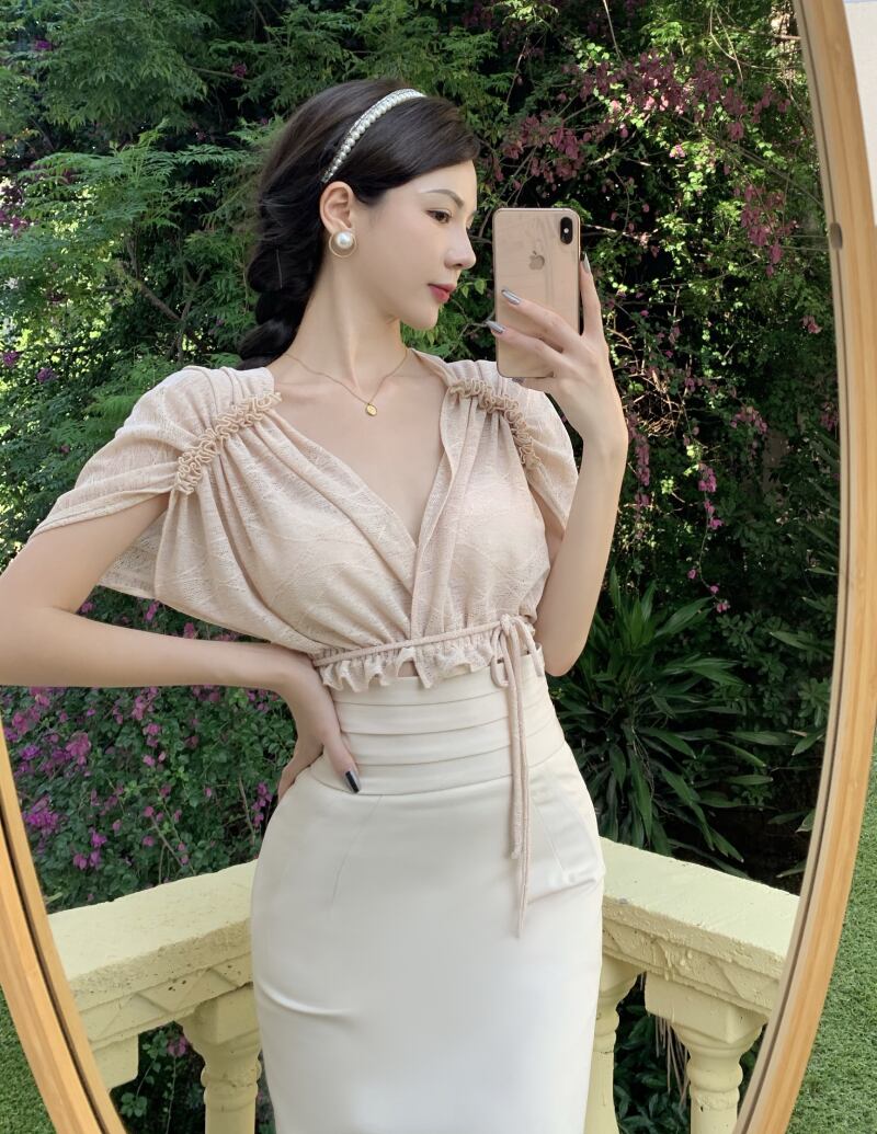 スカート ジャカードウェストトップス サテンハイウェストサマー 夏物 Xiaofeijia61816335960
