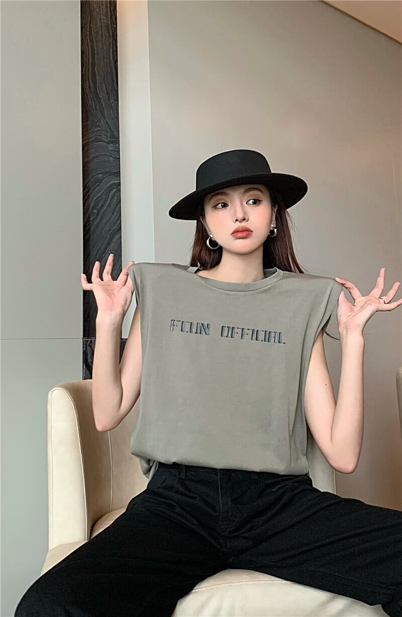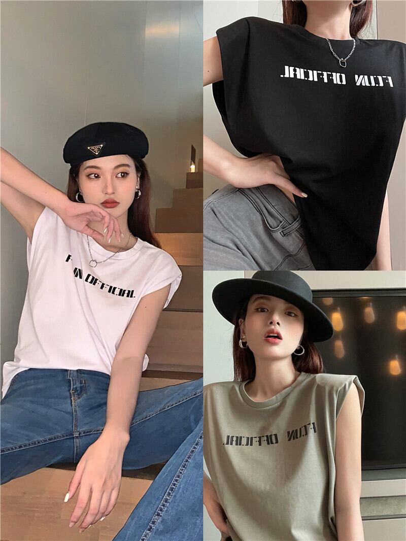 スタンダードルーズノースリーブトップス Tシャツ レトロ Xiaofeijia7249111730