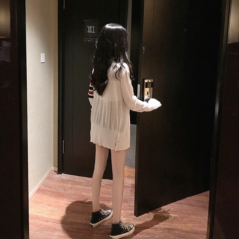 スプリングサマーニットカーディガン薄手シャツ ルーズコート ジャケット ロング 春物 夏物 Xiaofeijia8489790155