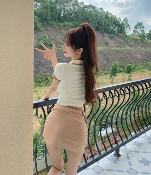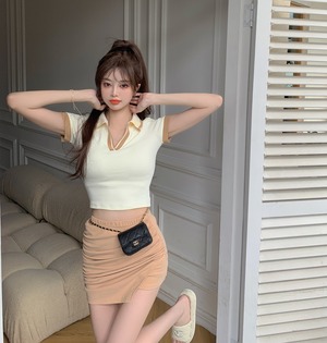 ウェストセット フィットVネックショートシャツ ストレッチハイウェストプリーツサマー エラスティック 伸縮 夏物 Xiaofeijia65832555670