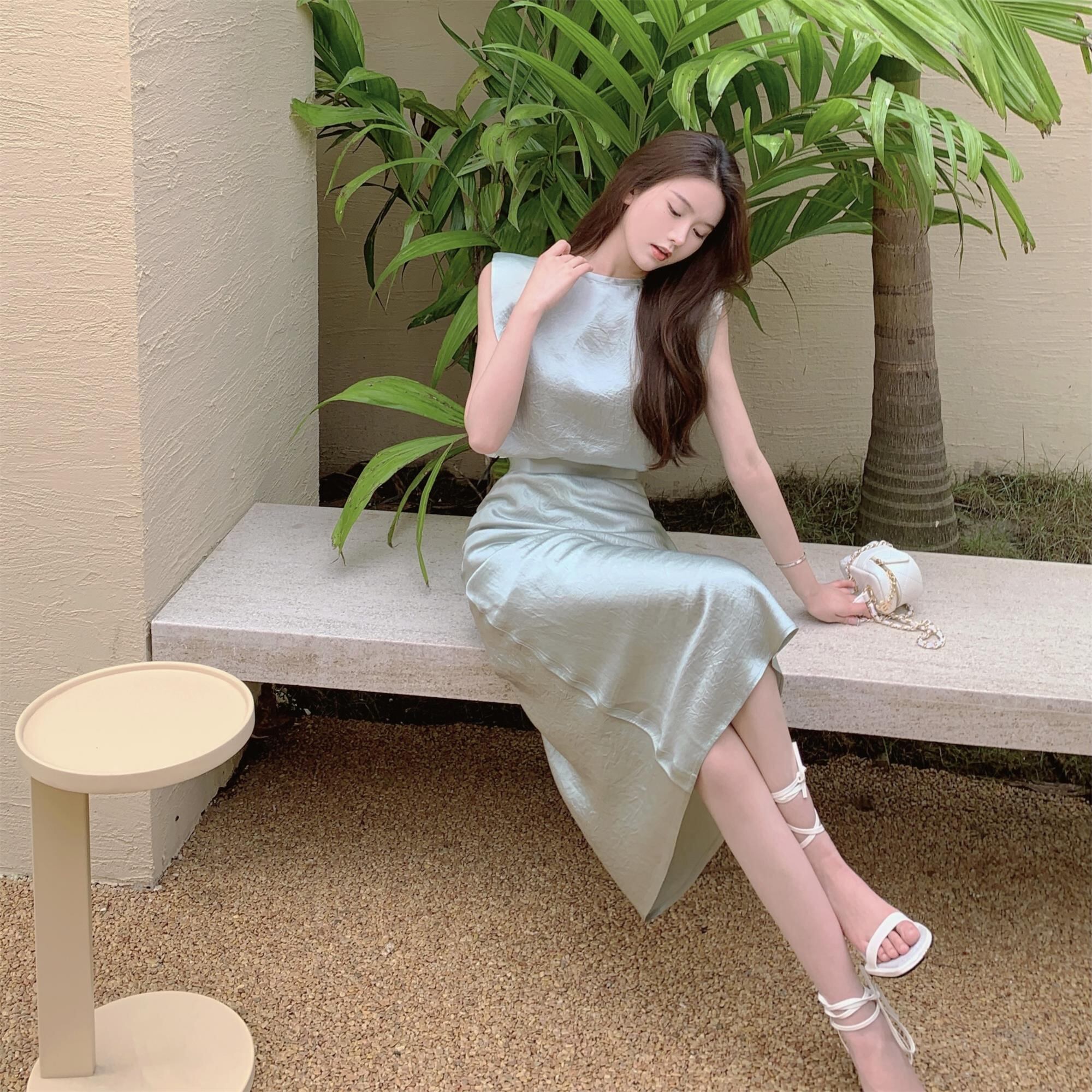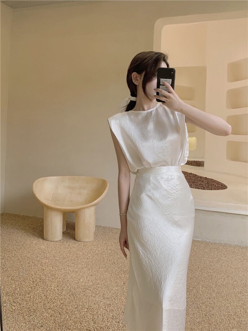 サマーノースリーブトップス ハイウェストウェストスカート 夏物 Xiaofeijia96284931575