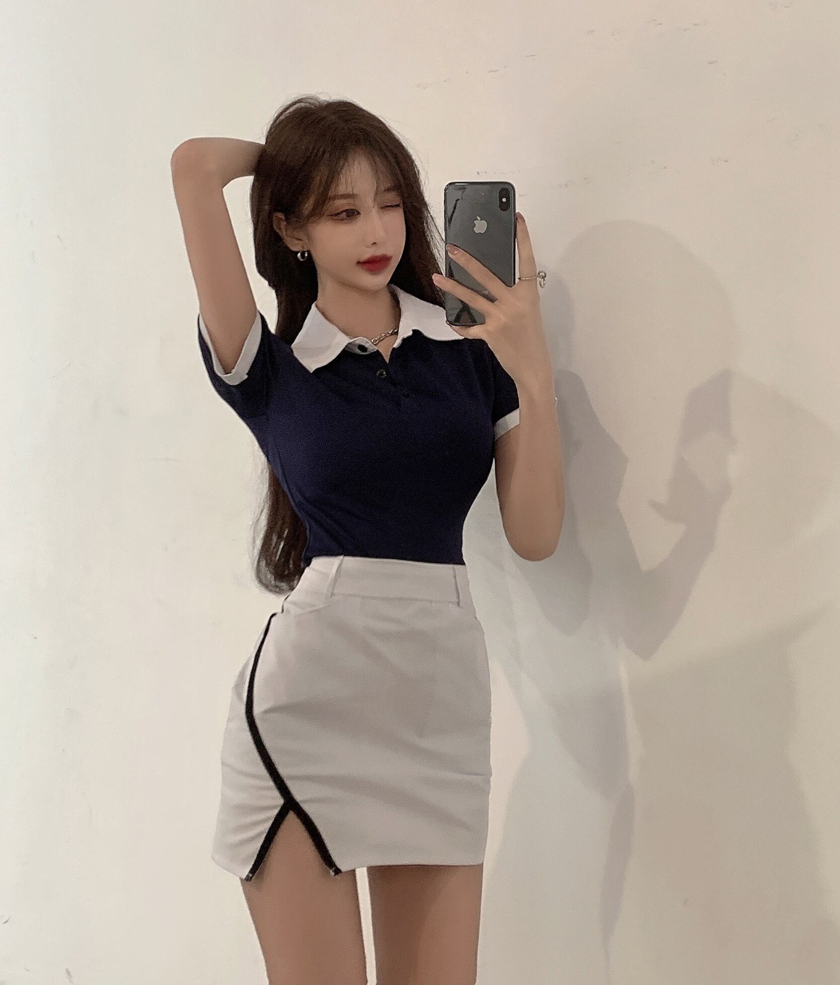 スタイルサマースリムカラーTシャツ トップス スカート 夏物 Xiaofeijia7247489900