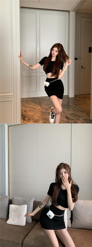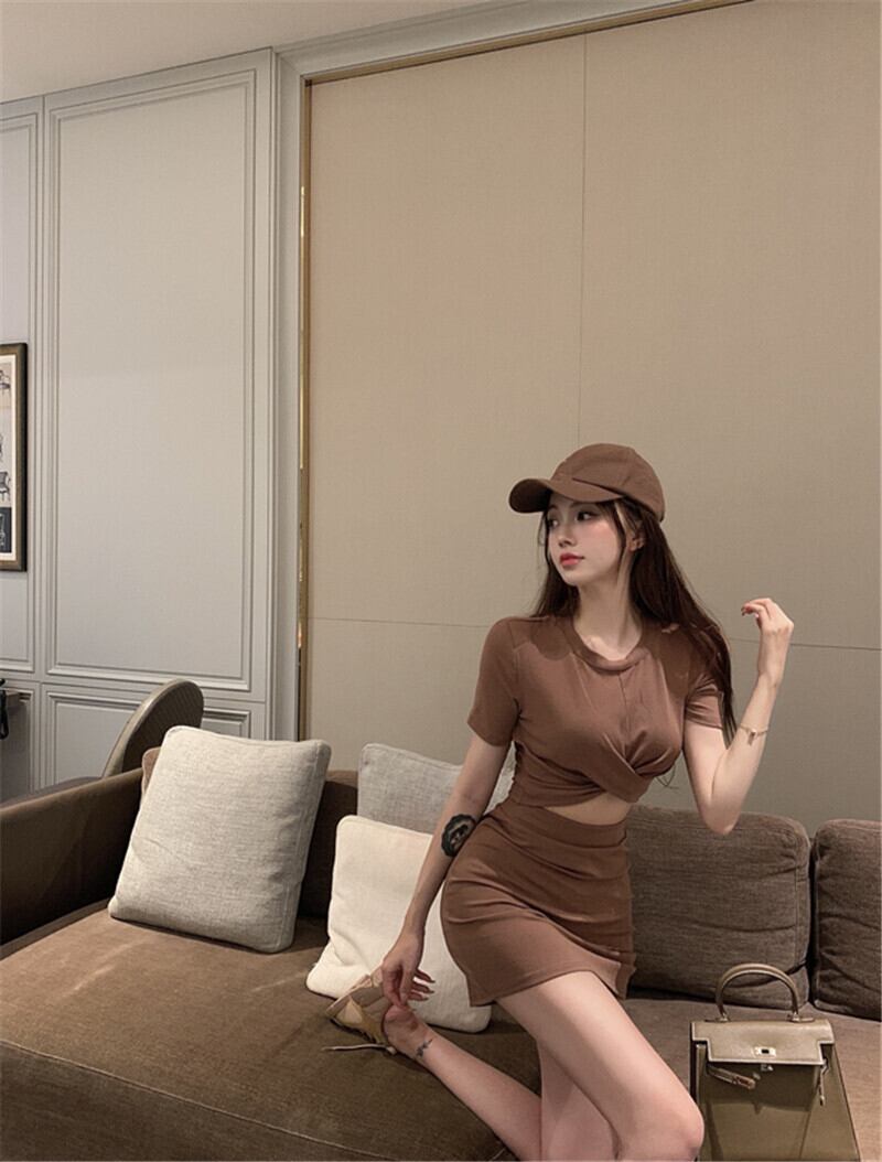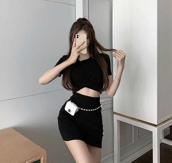スカート セット サマーショートラウンドネッククロス半袖スリーブTシャツ ストレッチウェスト ハーフスリーブ エラスティック 伸縮 夏物 Oネック Xiaofeijia85005032664