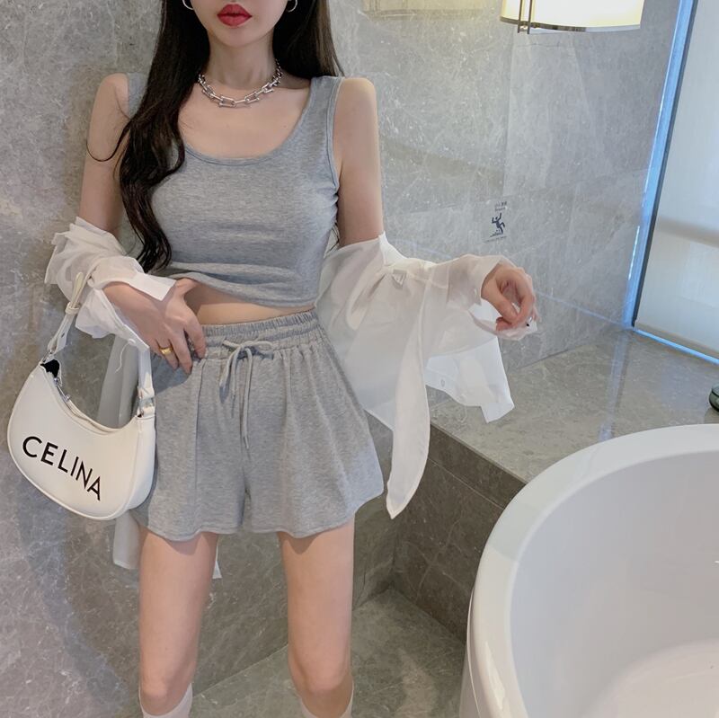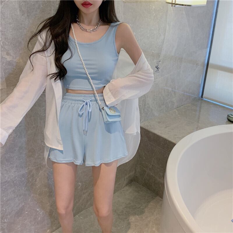 色:ブルーベスト+ショーツ,グレーのベスト+ショーツ,白のシャツ