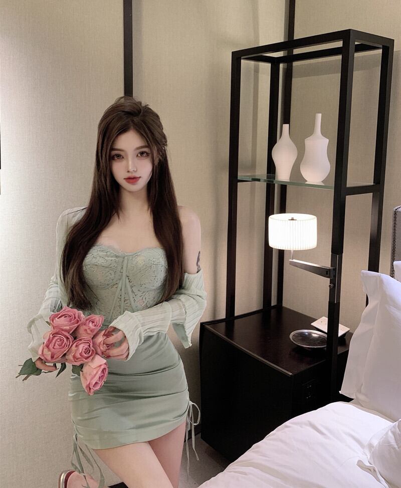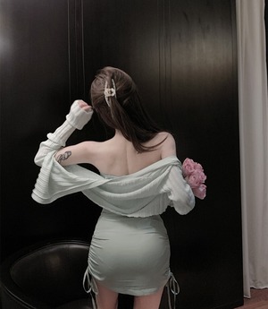 色:グリーンカーディガン,緑のスカート,グリーンチューブトップ