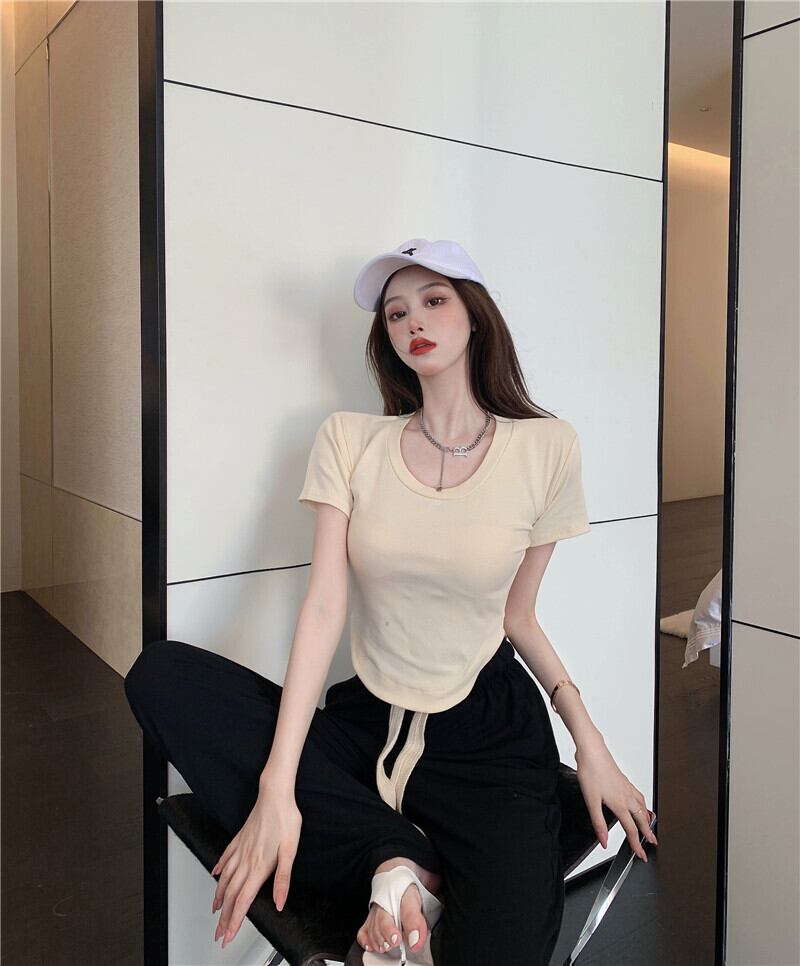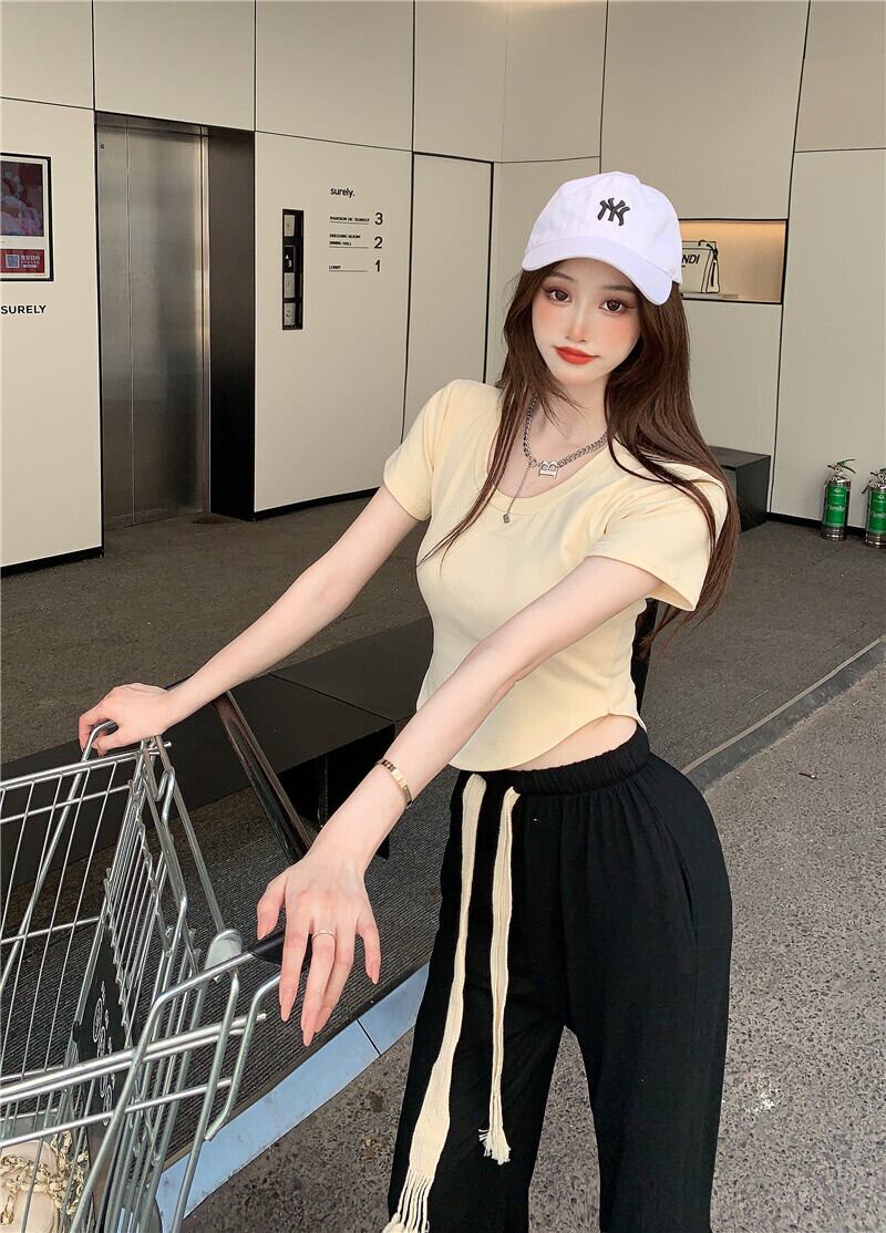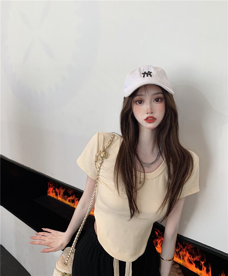Tシャツ ショートソリッド カラートップス サマー薄手 夏物 ソリッドカラー Xiaofeijia96357946909