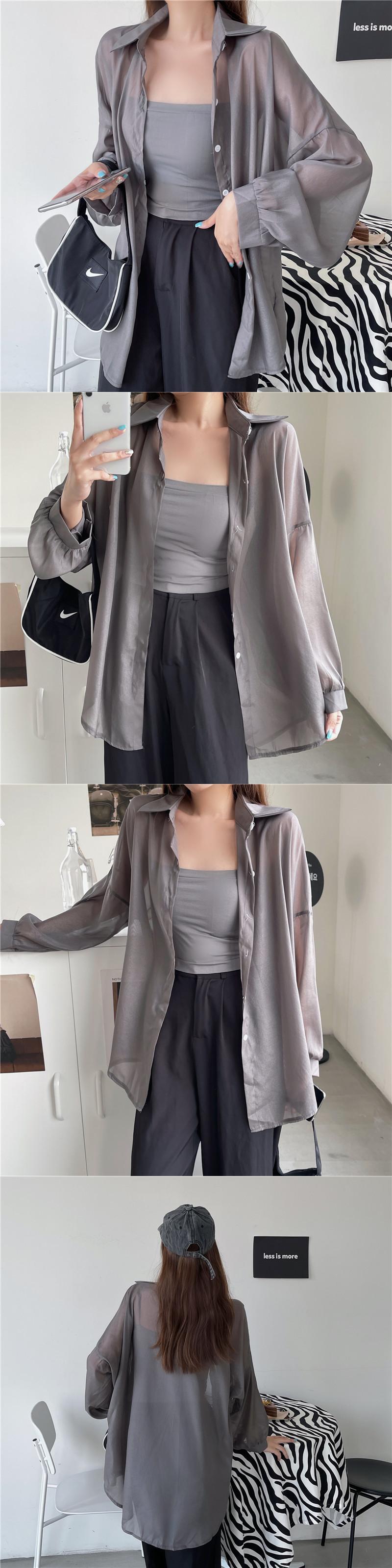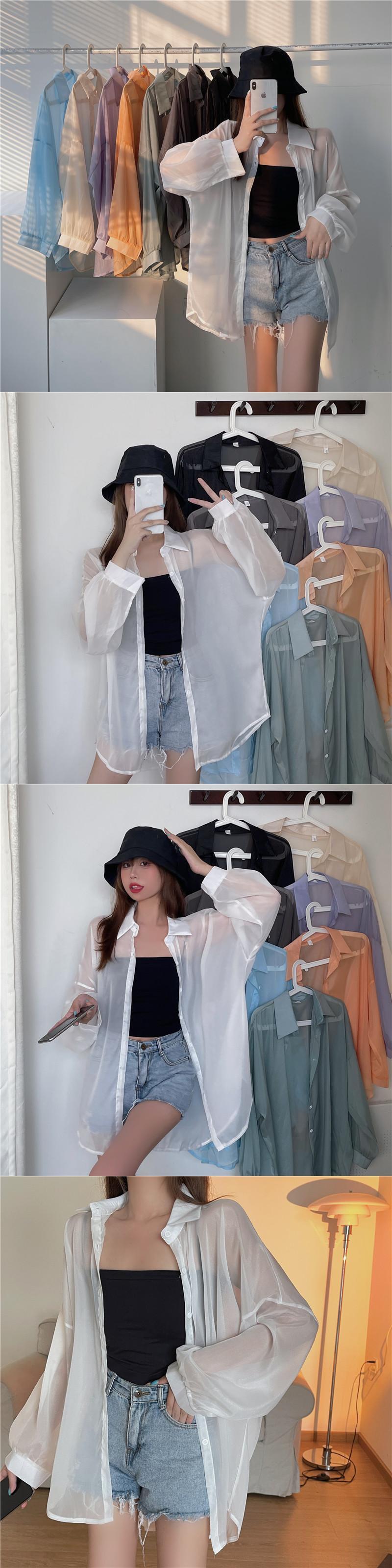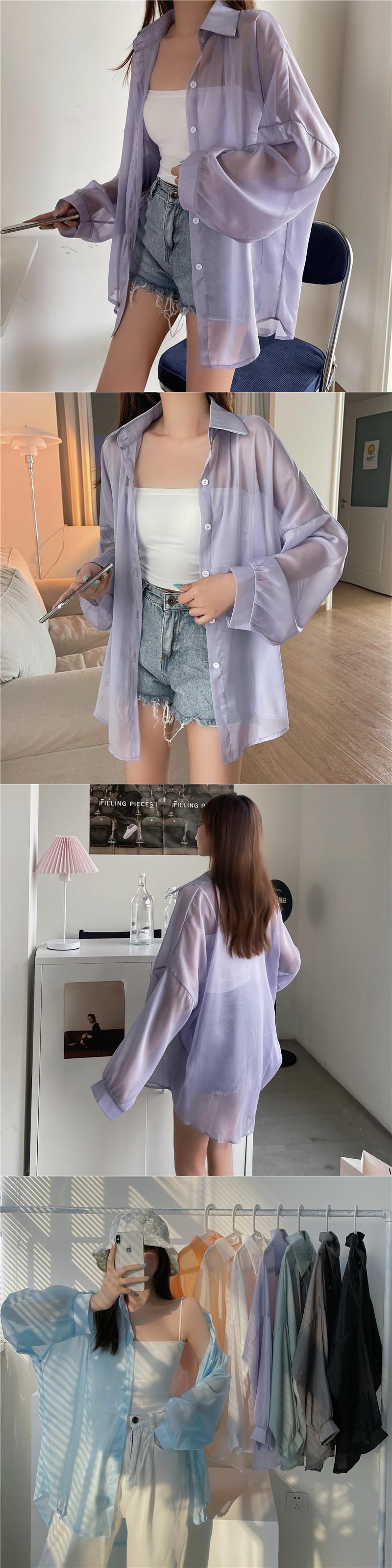 薄手サマーブラウス トップス ルーズカーディガンジャケット ロング 夏物 パール 真珠 Xiaofeijia88578610572