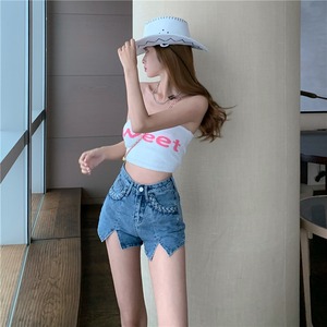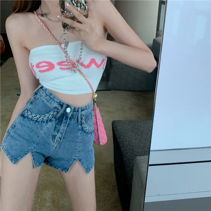 ショーツ サマーポケットスタンダードブルースリムフィットハイウェストウェストパンツ レトロ 夏物 ブルマー Xiaofeijia98320242284