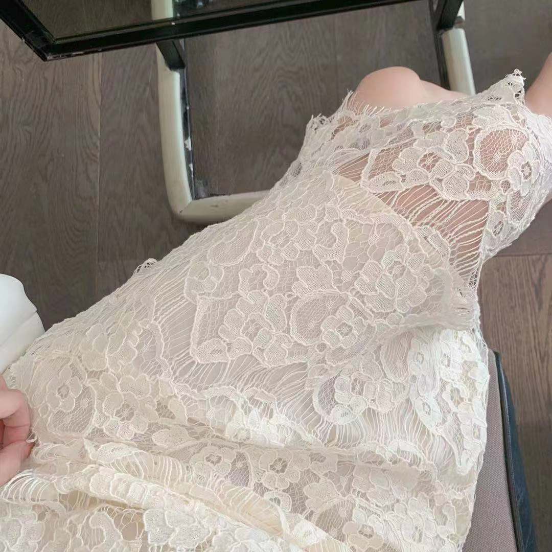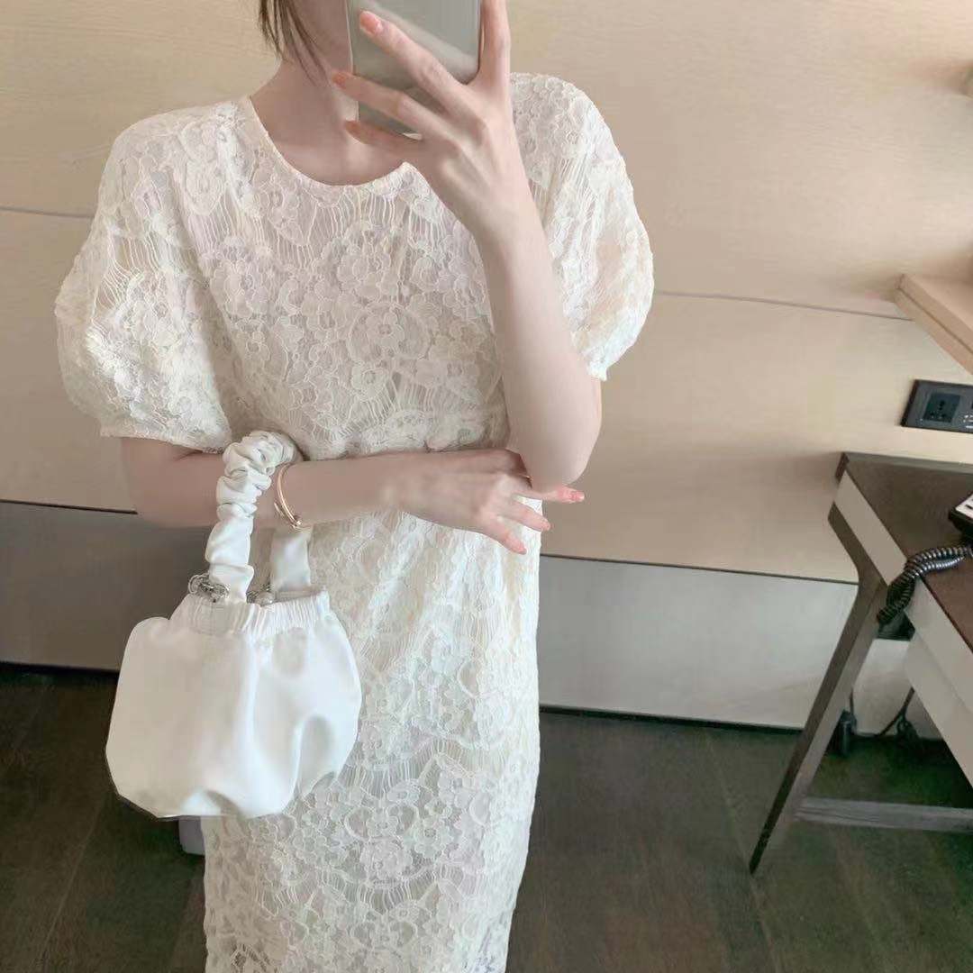 ホワイトレースドレス モダンサマーラウンドネックスリーブスカート 夏物 Oネック Xiaofeijia86070205430