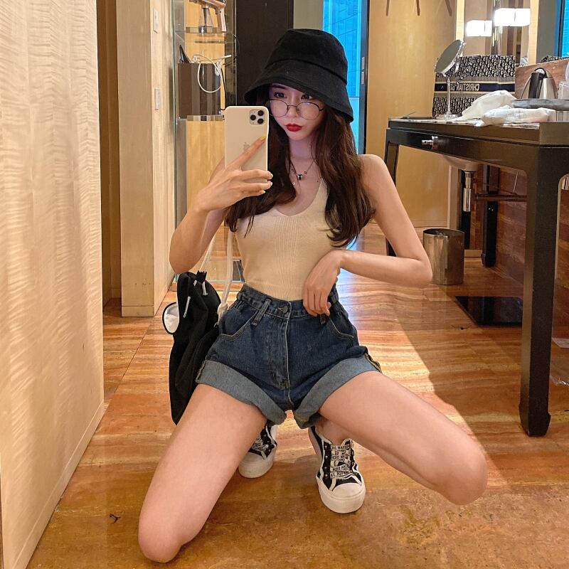 スプリングサマースタイルジーンズ ルーズショーツ パンツ ハイウェスト 春物 夏物 ブルマー Xiaofeijia25563058089
