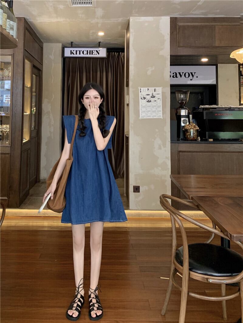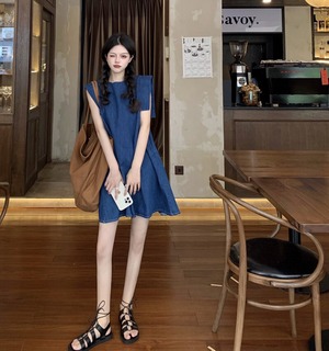 スタイル薄手ラウンドネックノースリーブルーズスリムドレス Oネック ステッチ Xiaofeijia61382057505