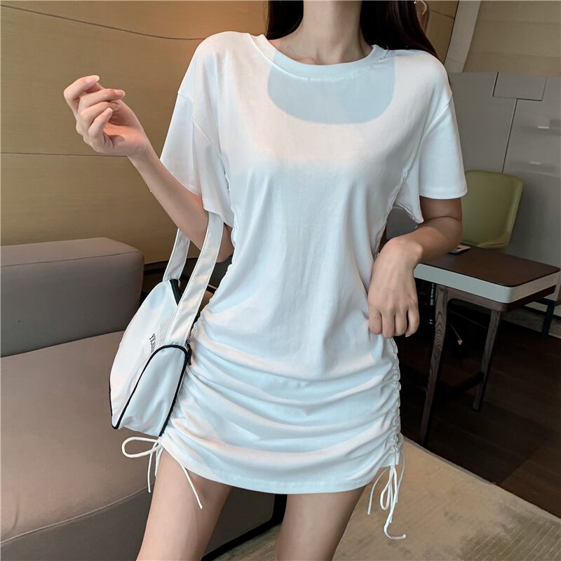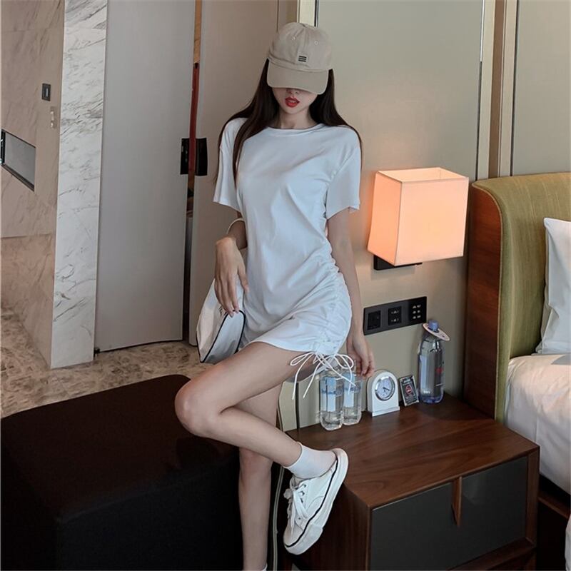 ショートドレス サマーギャザープリーツTシャツ スカート 夏物 Xiaofeijia12616471236