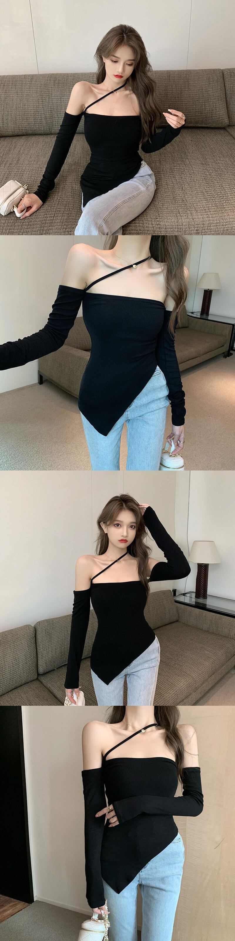 ストラップレスTシャツ レディースサマーショート長袖スリーブトップス ロング 夏物 Xiaofeijia6300811522